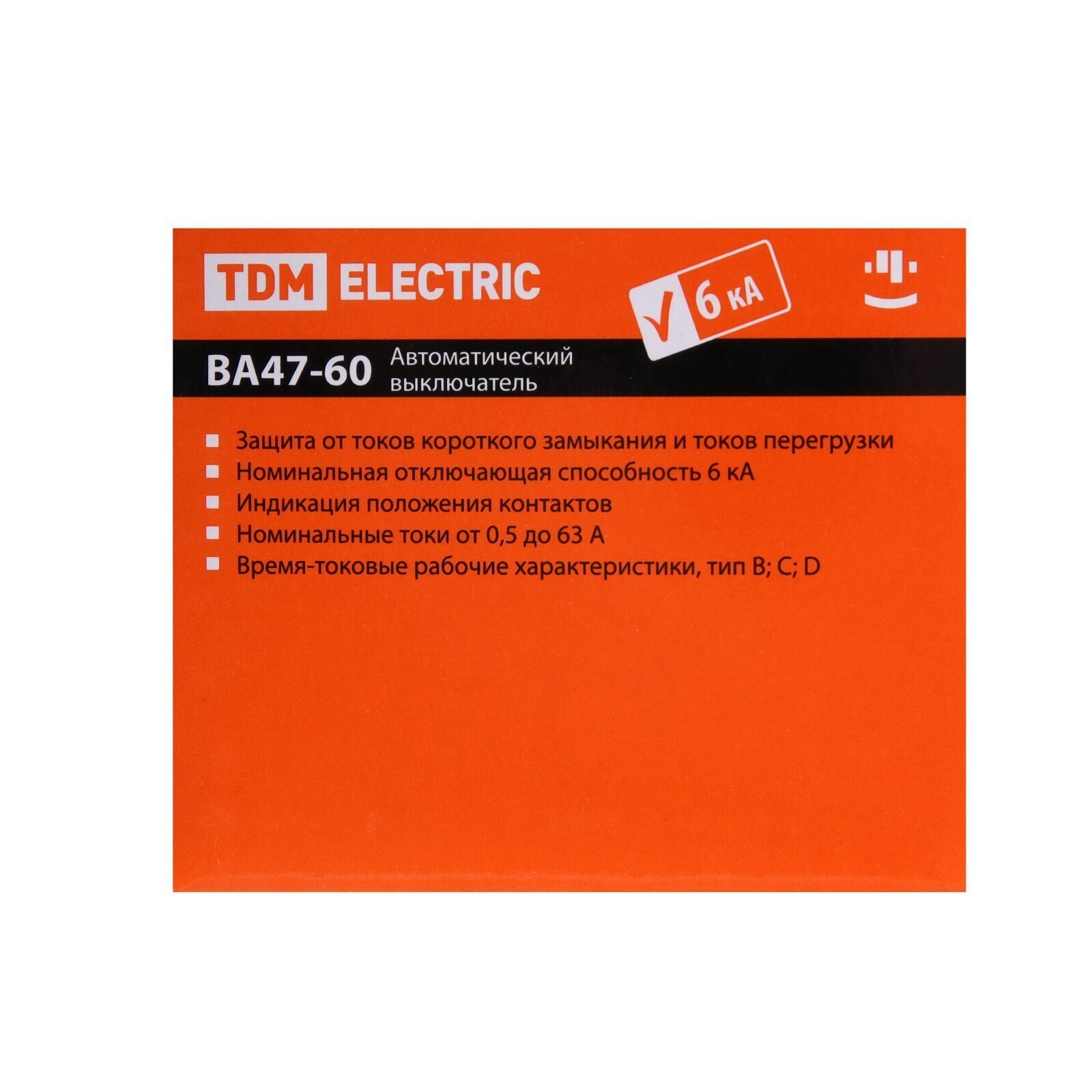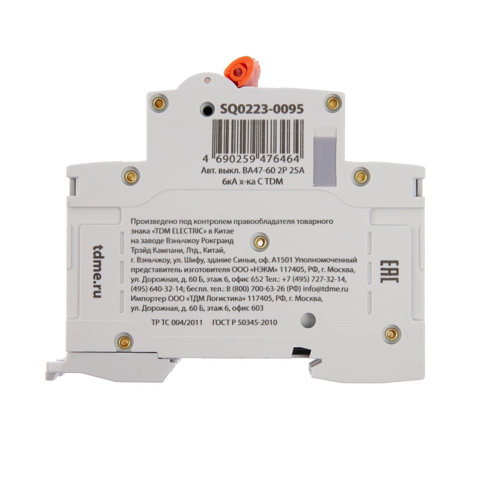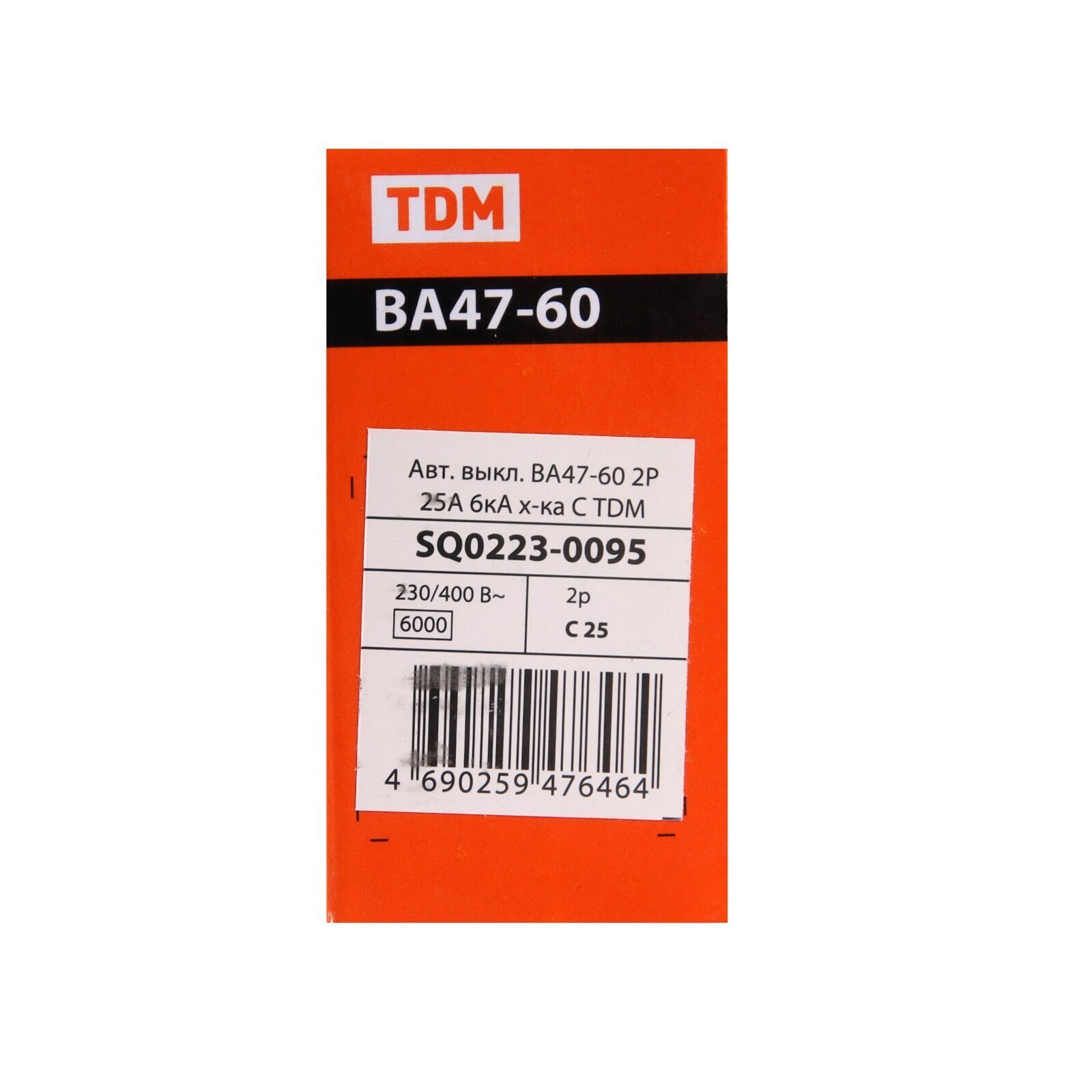Выключатель автоматический TDM ВА47-60, 2п, 25 А, 6 кА, C, SQ0223-0095