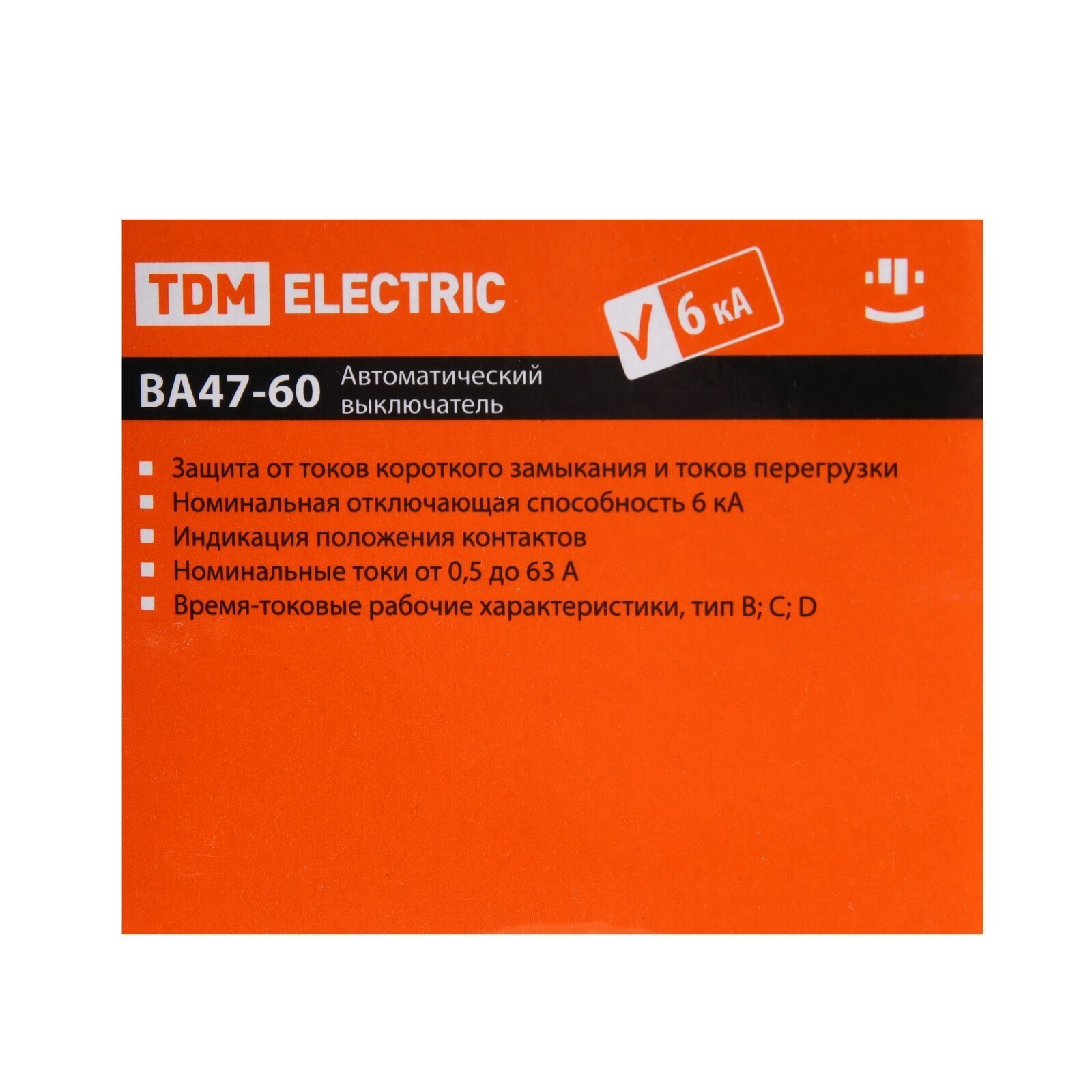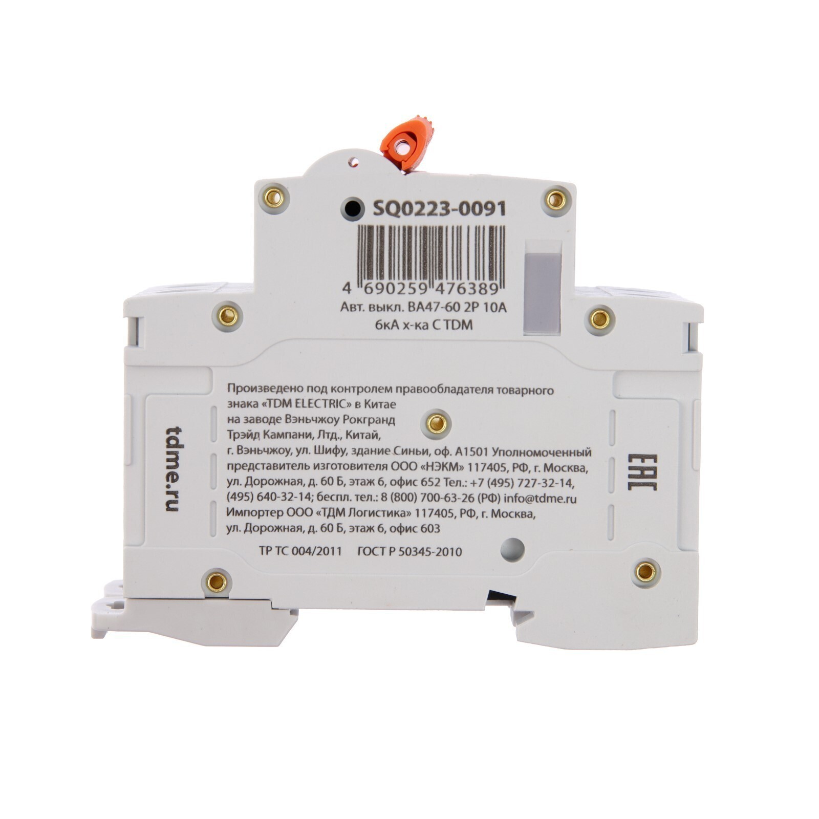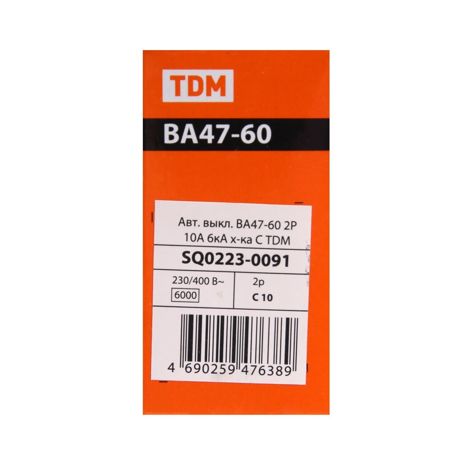 Выключатель автоматический TDM ВА47-60, 2п, 10 А, 6 кА, C, SQ0223-0091