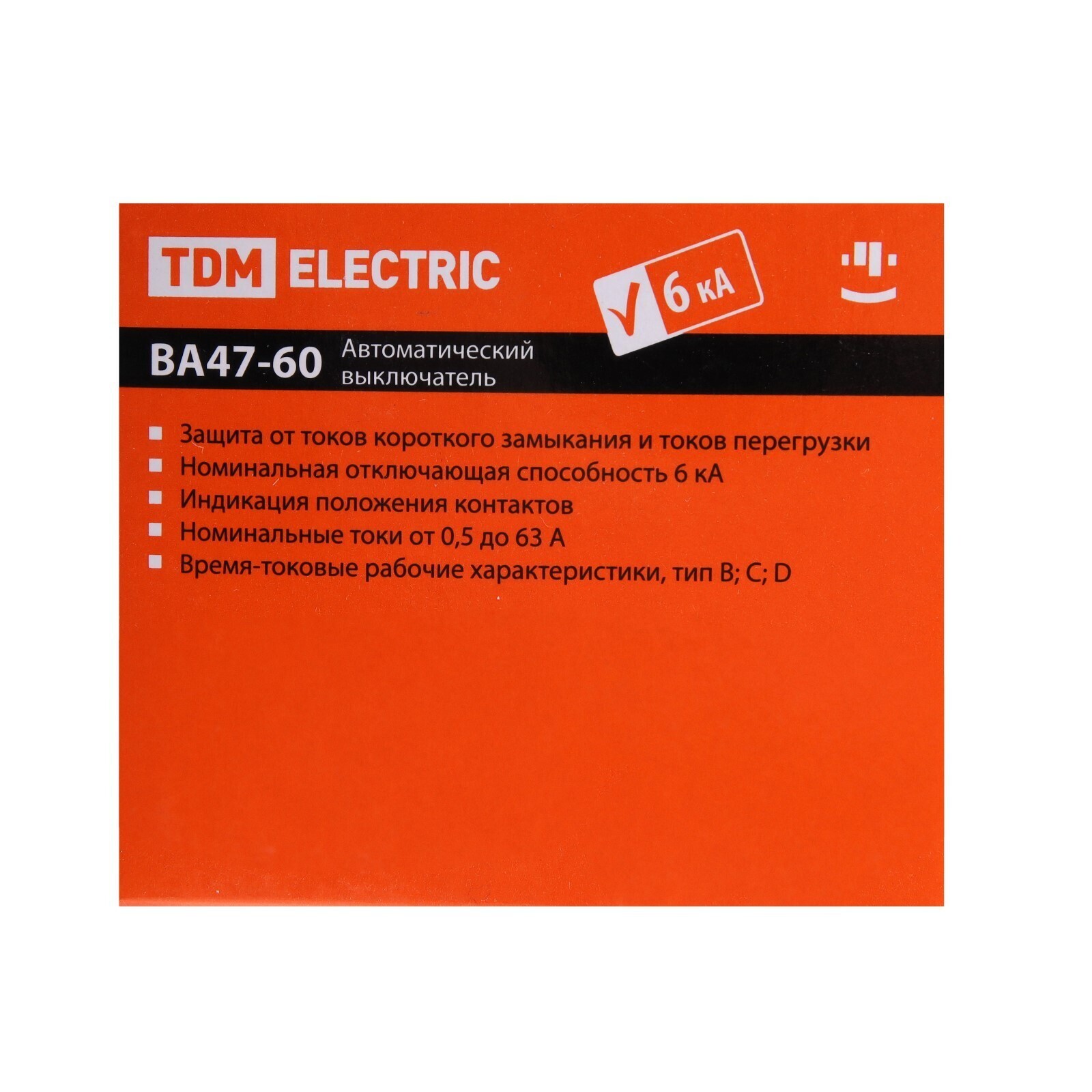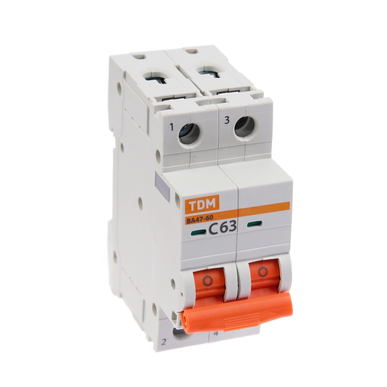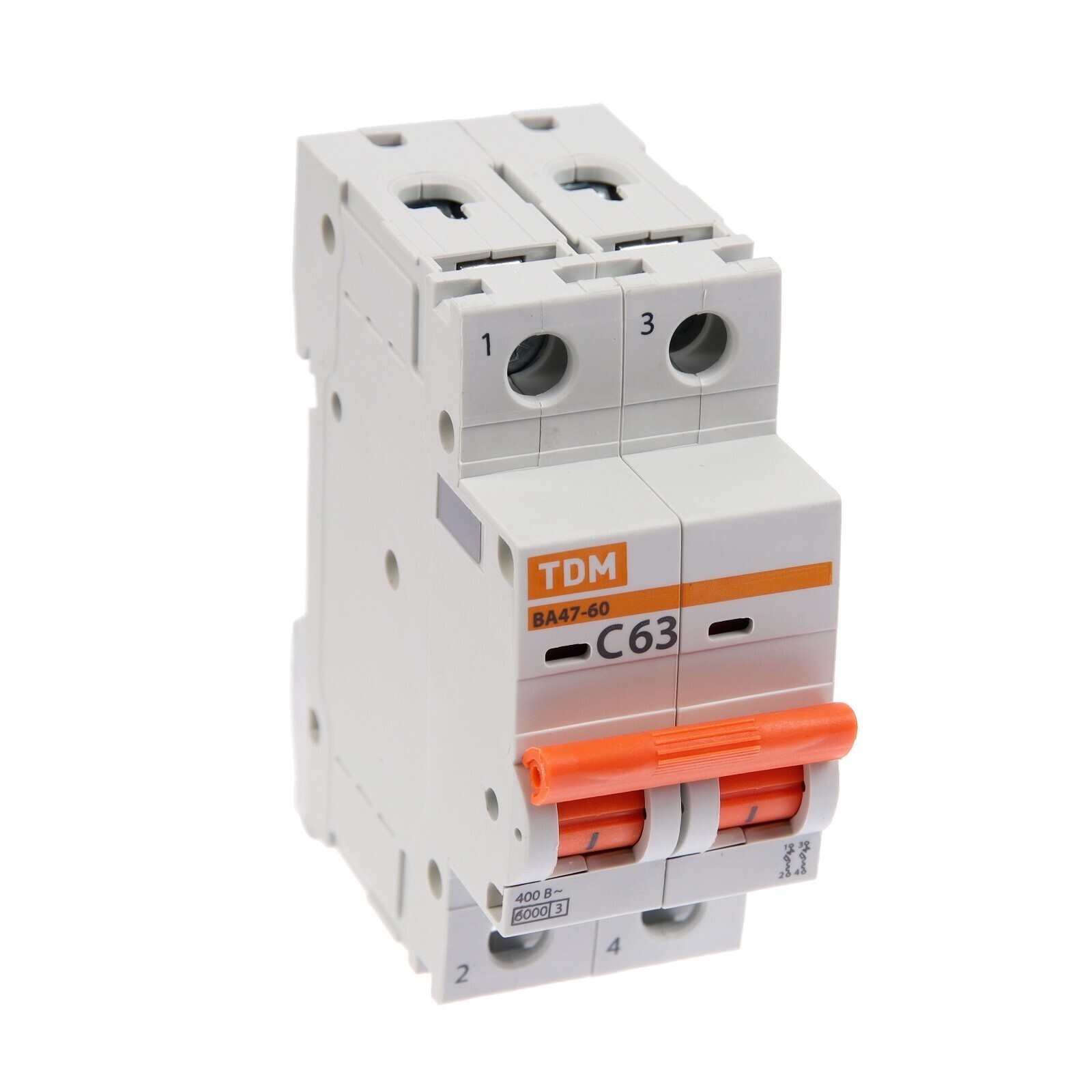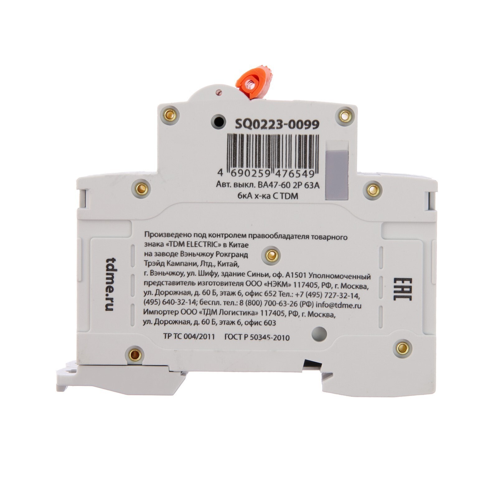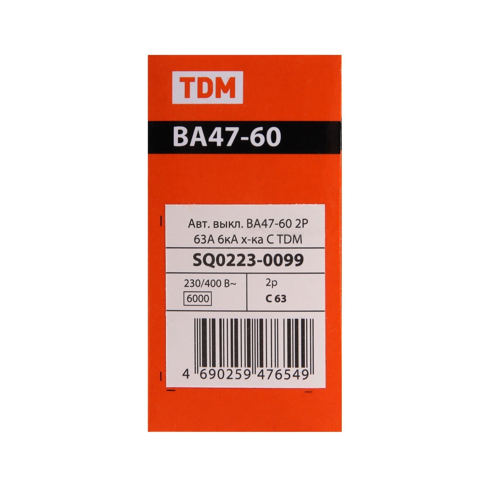 Выключатель автоматический TDM ВА47-60, 2п, 63 А, 6 кА, C, SQ0223-0099