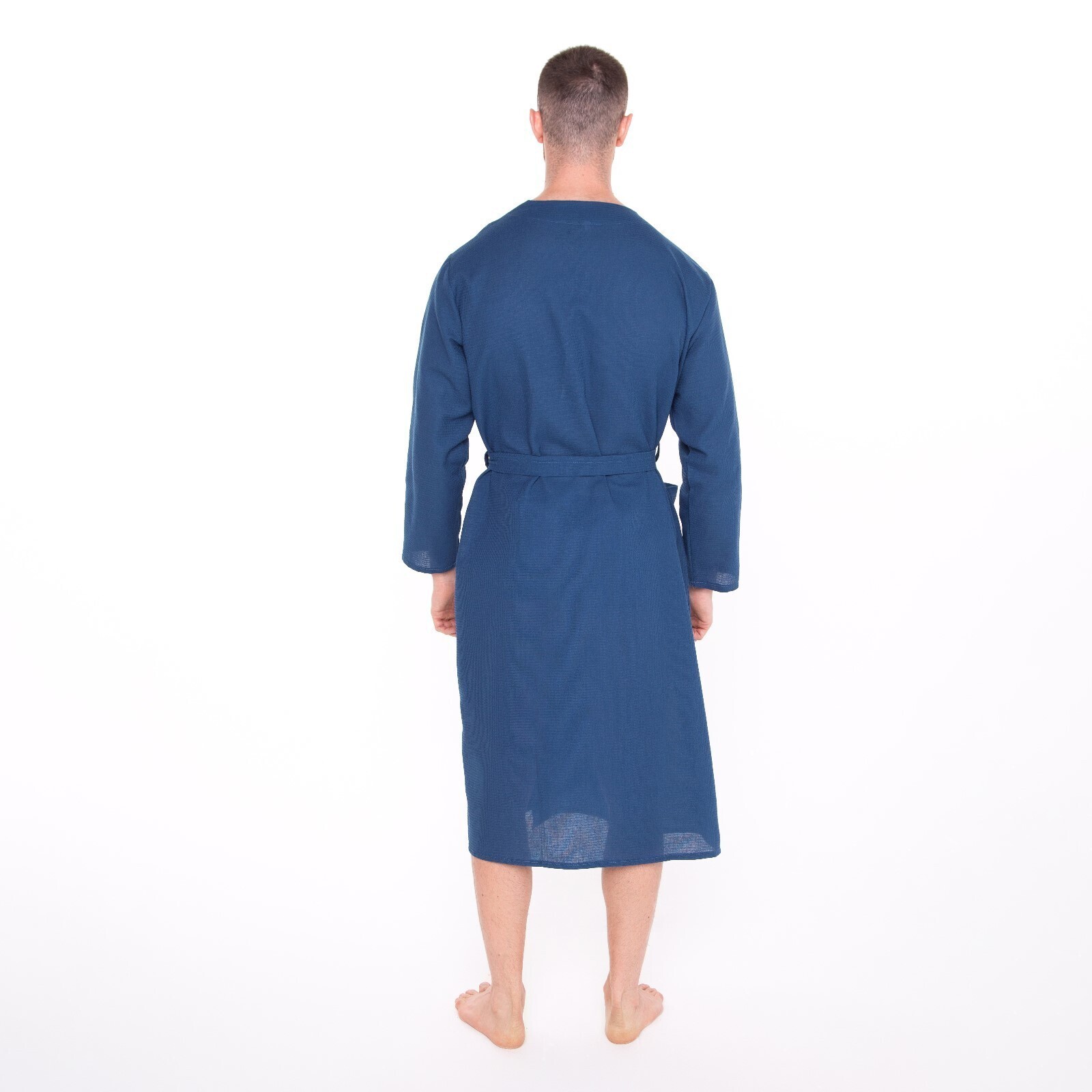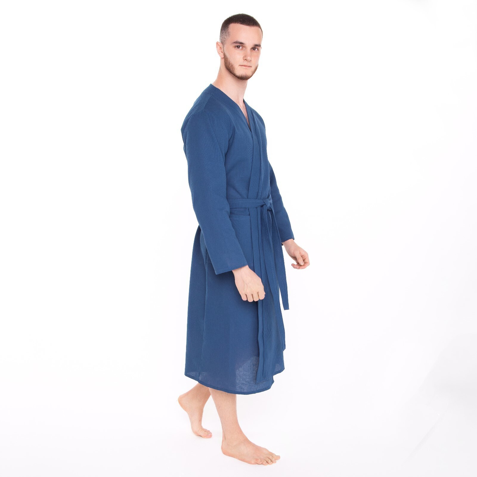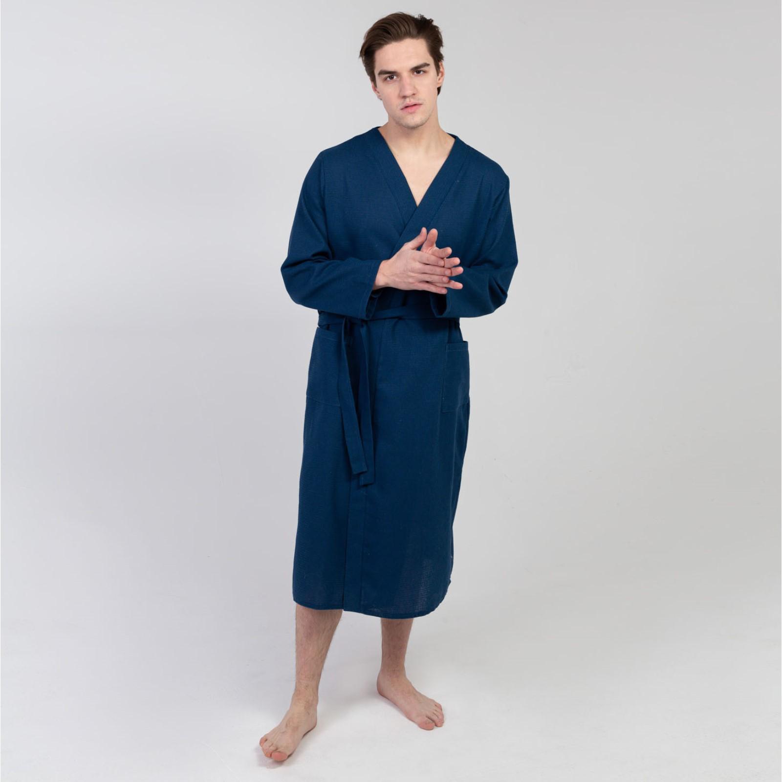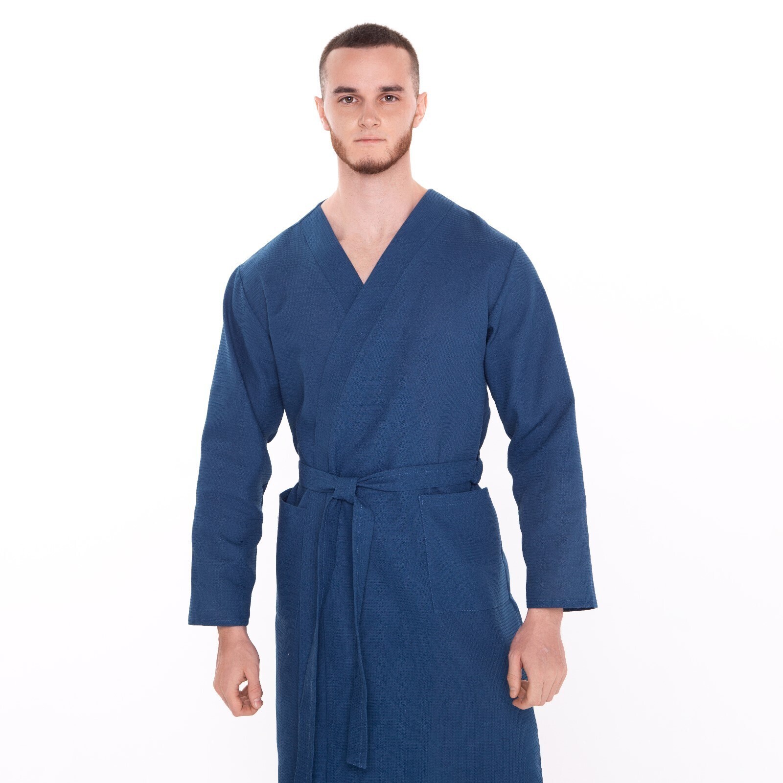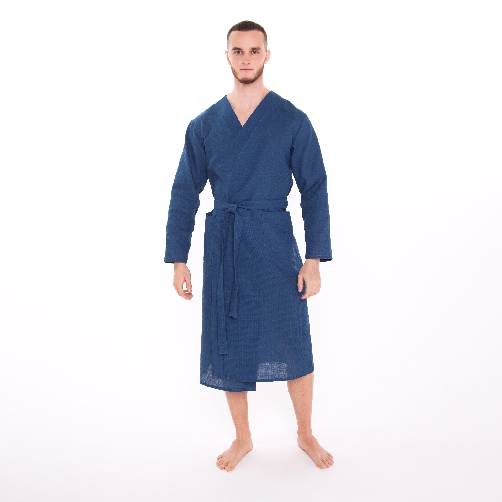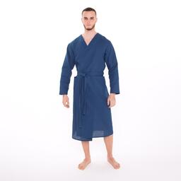 Халат вафельный запашной мужской р-р 54, цв.Василек, 160 гр/м,Хл.100%