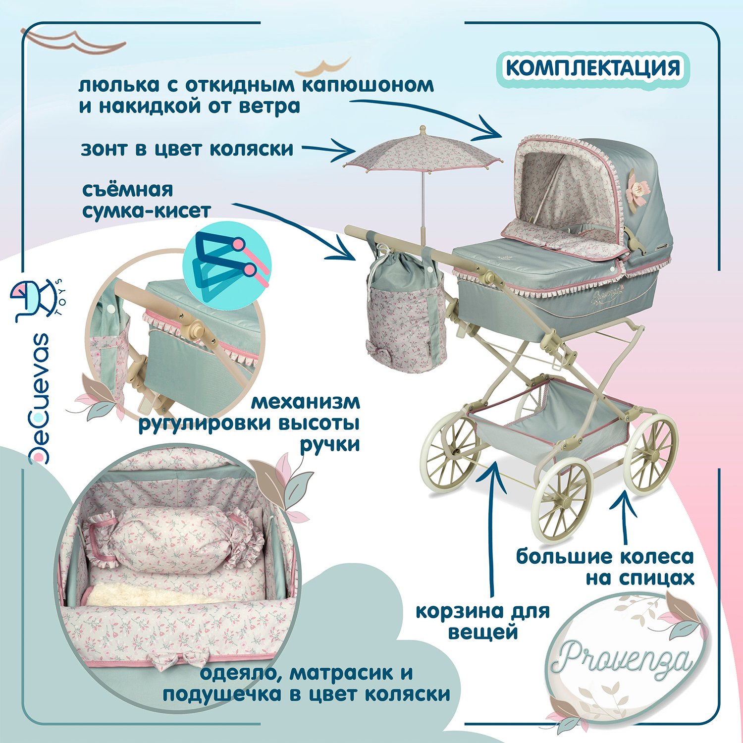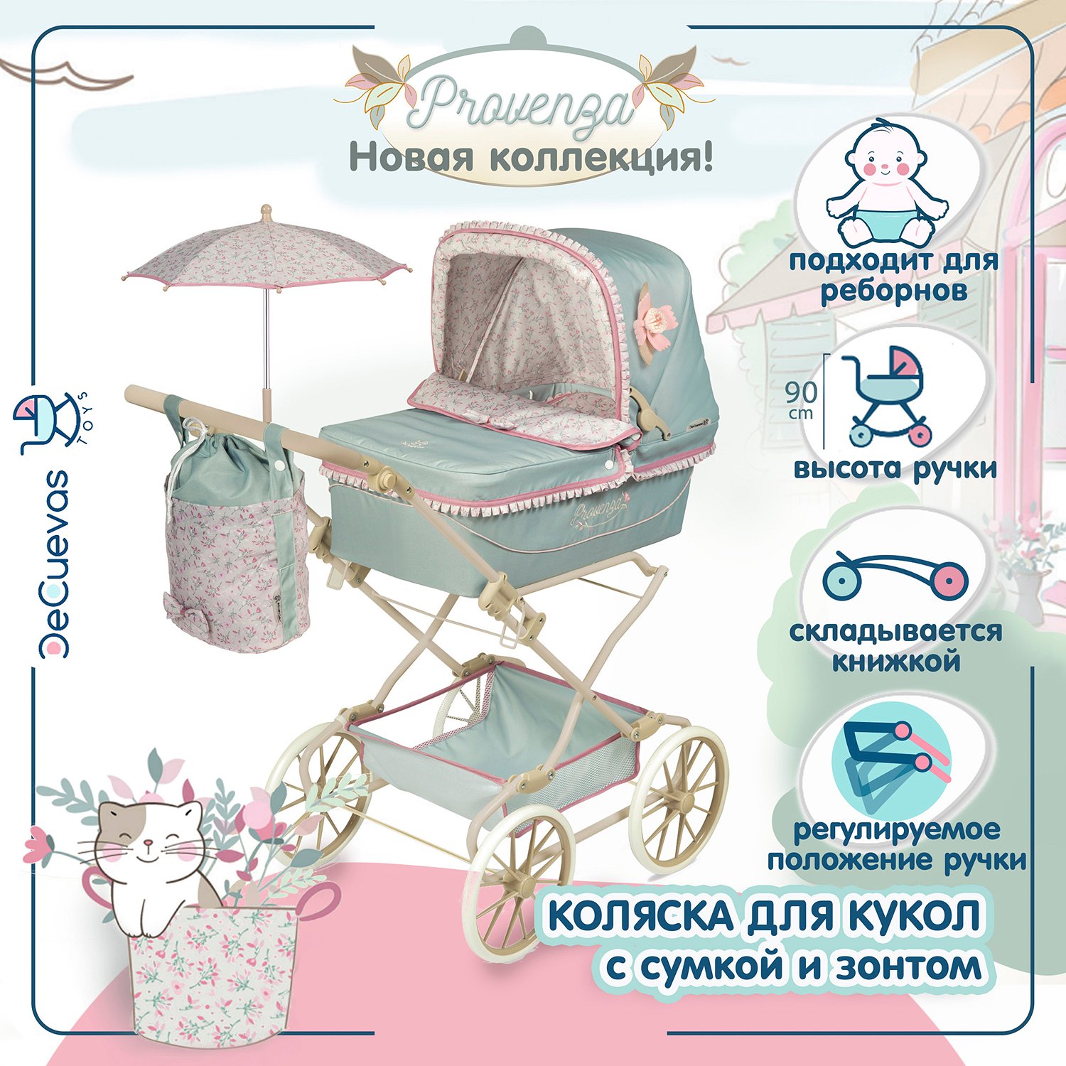 Коляска для кукол DeCuevas Toys люлька высота ручки 90 см съемная сумка зонт серия Прованс 82045