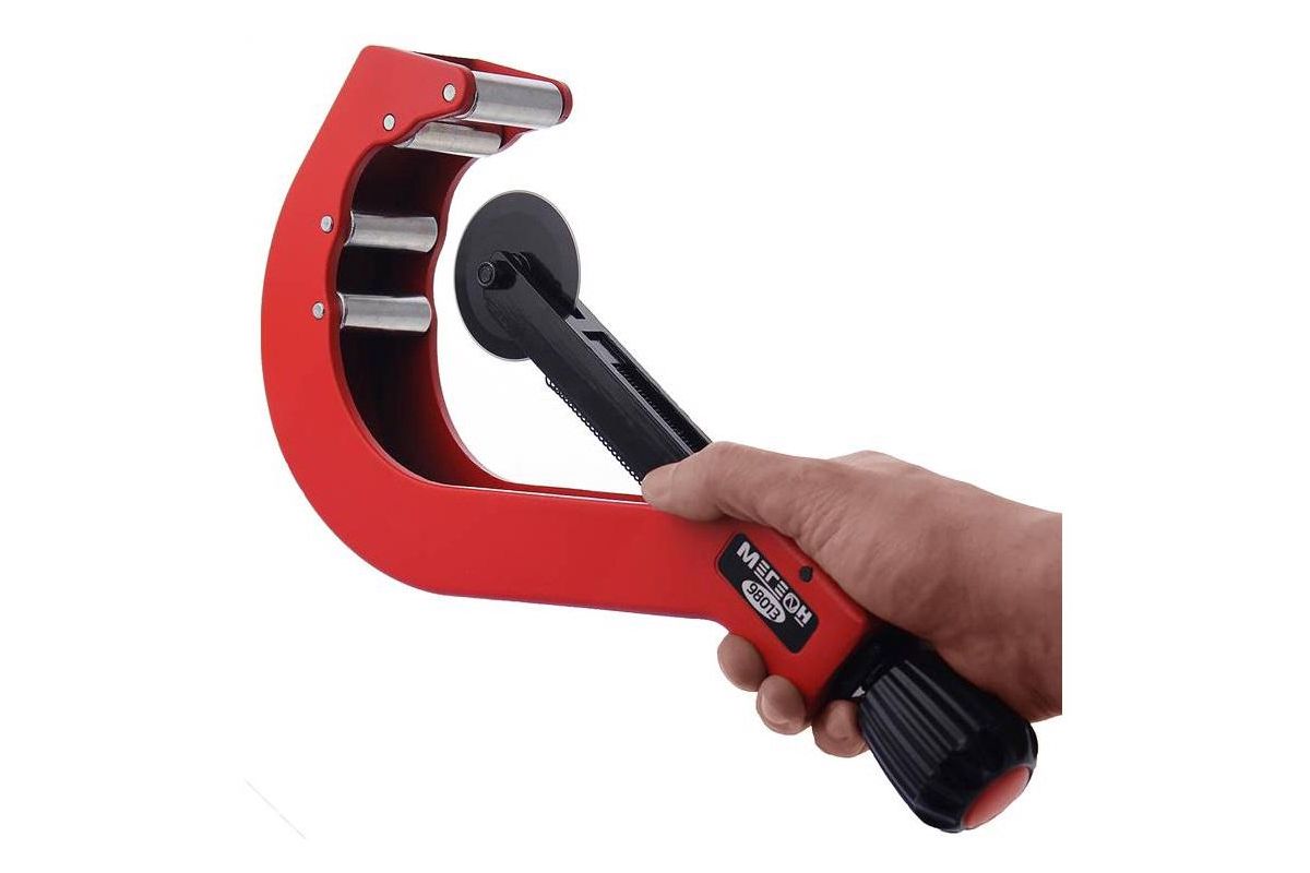 Высокоэффективный роликовый инструмент, предназначенный для резки водопроводных труб из металлопласта (PAP) и полипропилена (PPB, PPH, PPR) имеющих наружный диаметр от 50 до 120 миллиметров. Изготовление упорных роликов с применением закрытых подшипников, а режущего из инструментальной стали значительно увеличивает их срок службы. Форма оптимизирована под быстрый перехват для меньшей усталости рук.