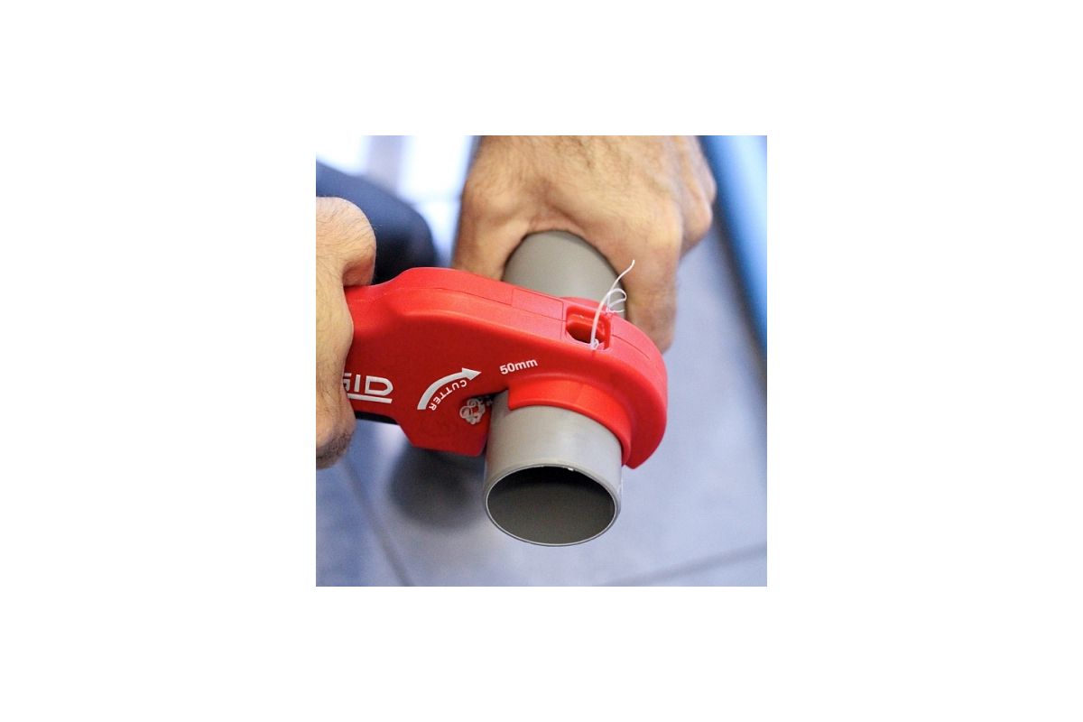 Многофункциональность — может использоваться для резки полиэтиленовых (PE), полипропиленовых (PP) и тонкостенных ПВХ (PVC) труб с внешним диаметром 50 мм;