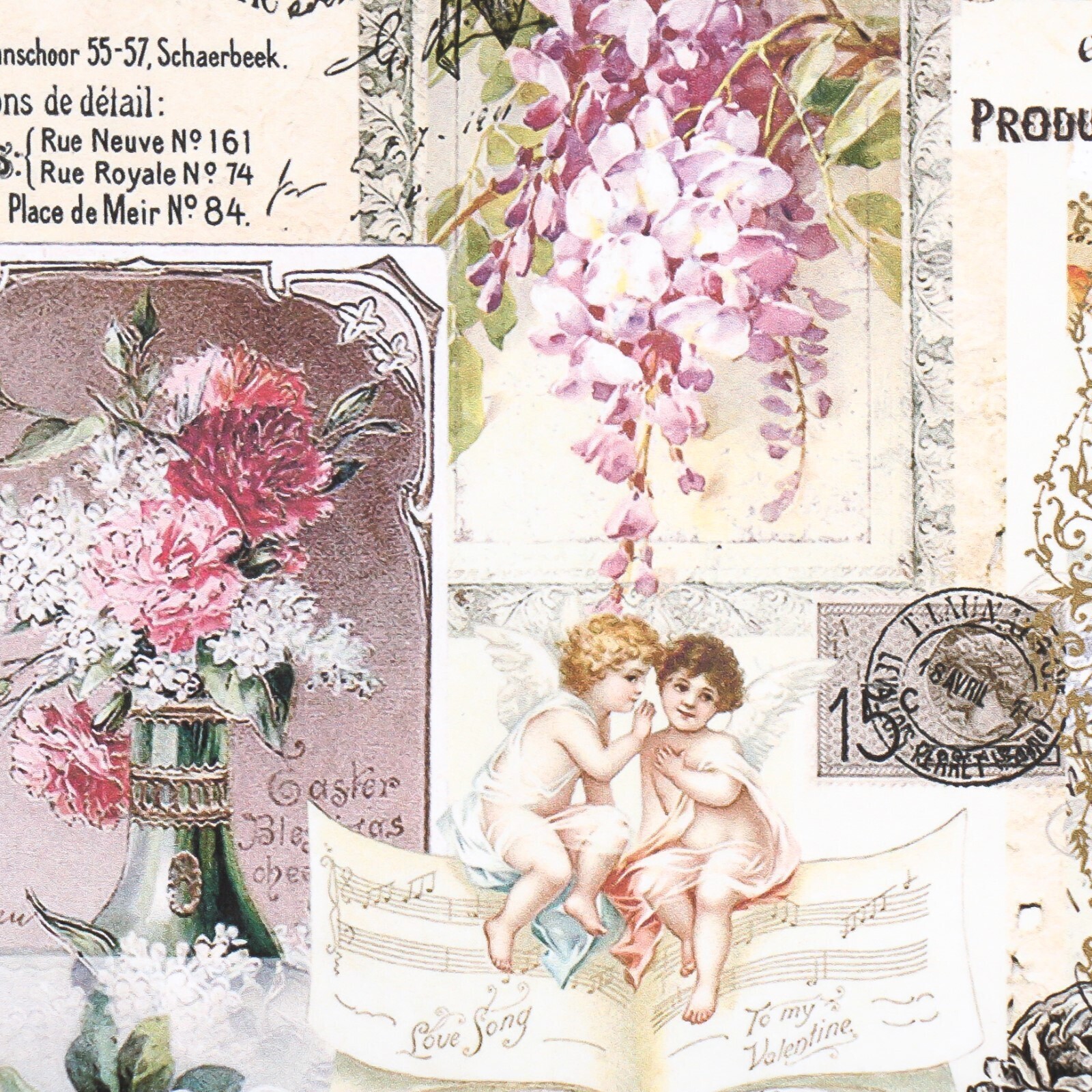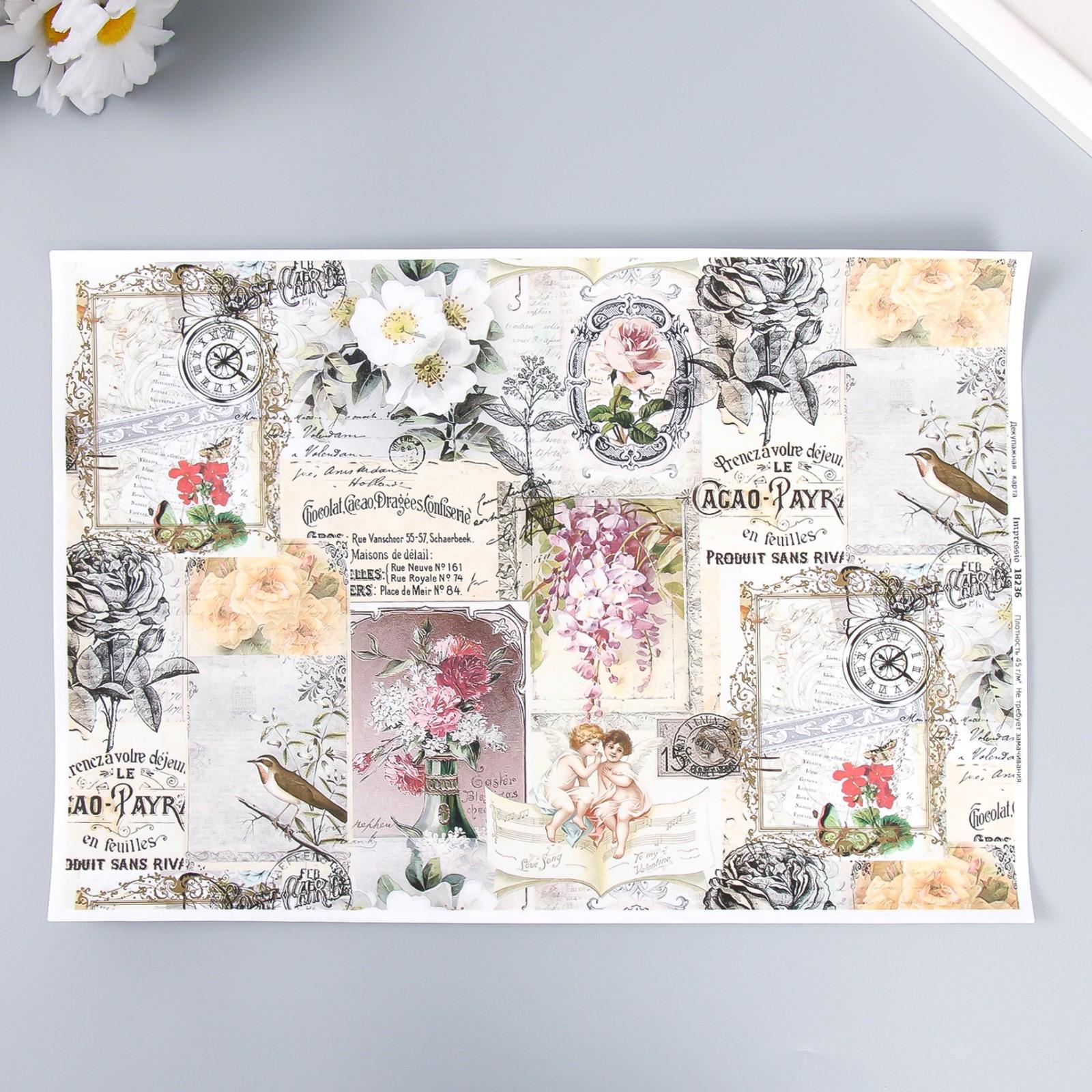Декупажная карта "Цветы, надписи" плотность 45 г/м2 формат А4