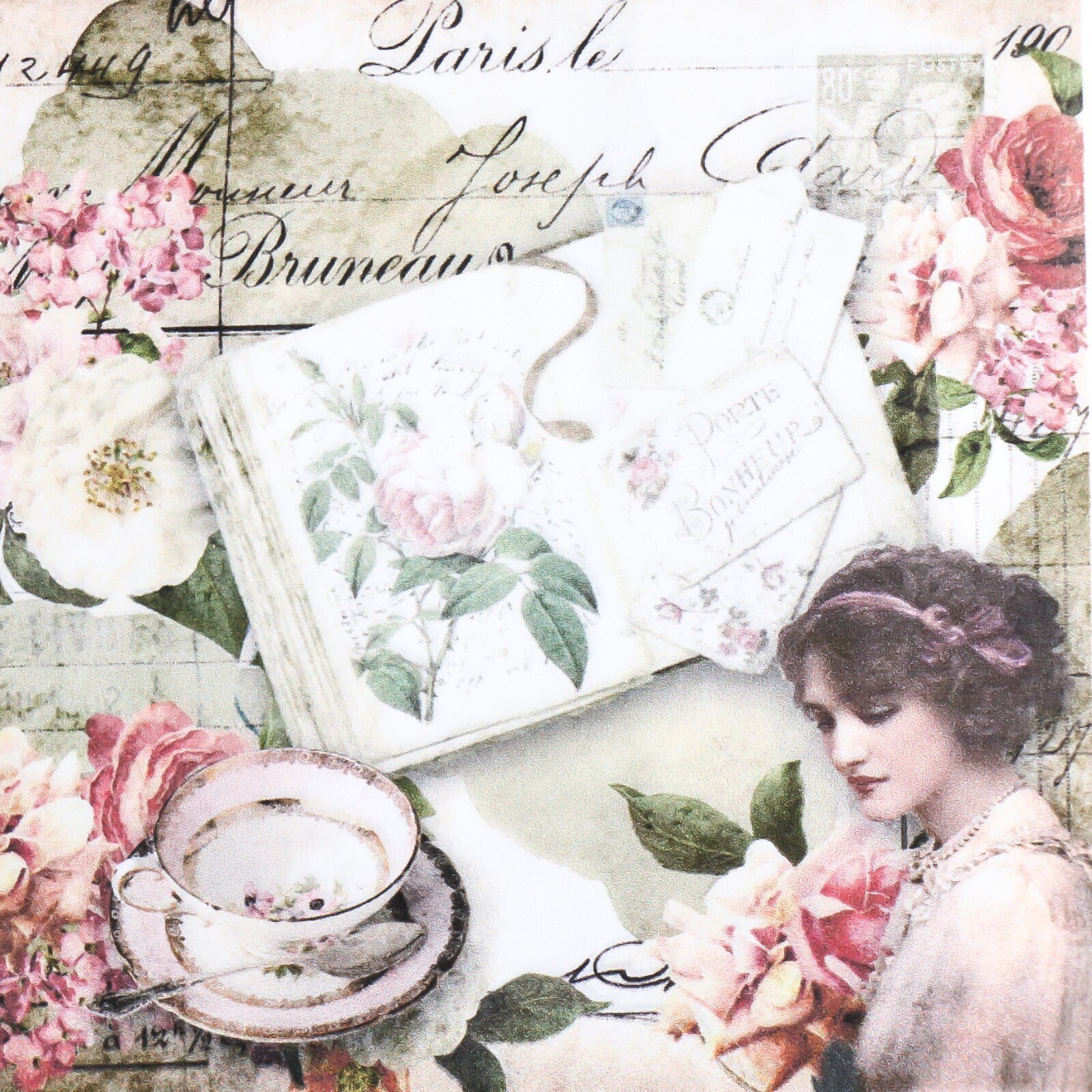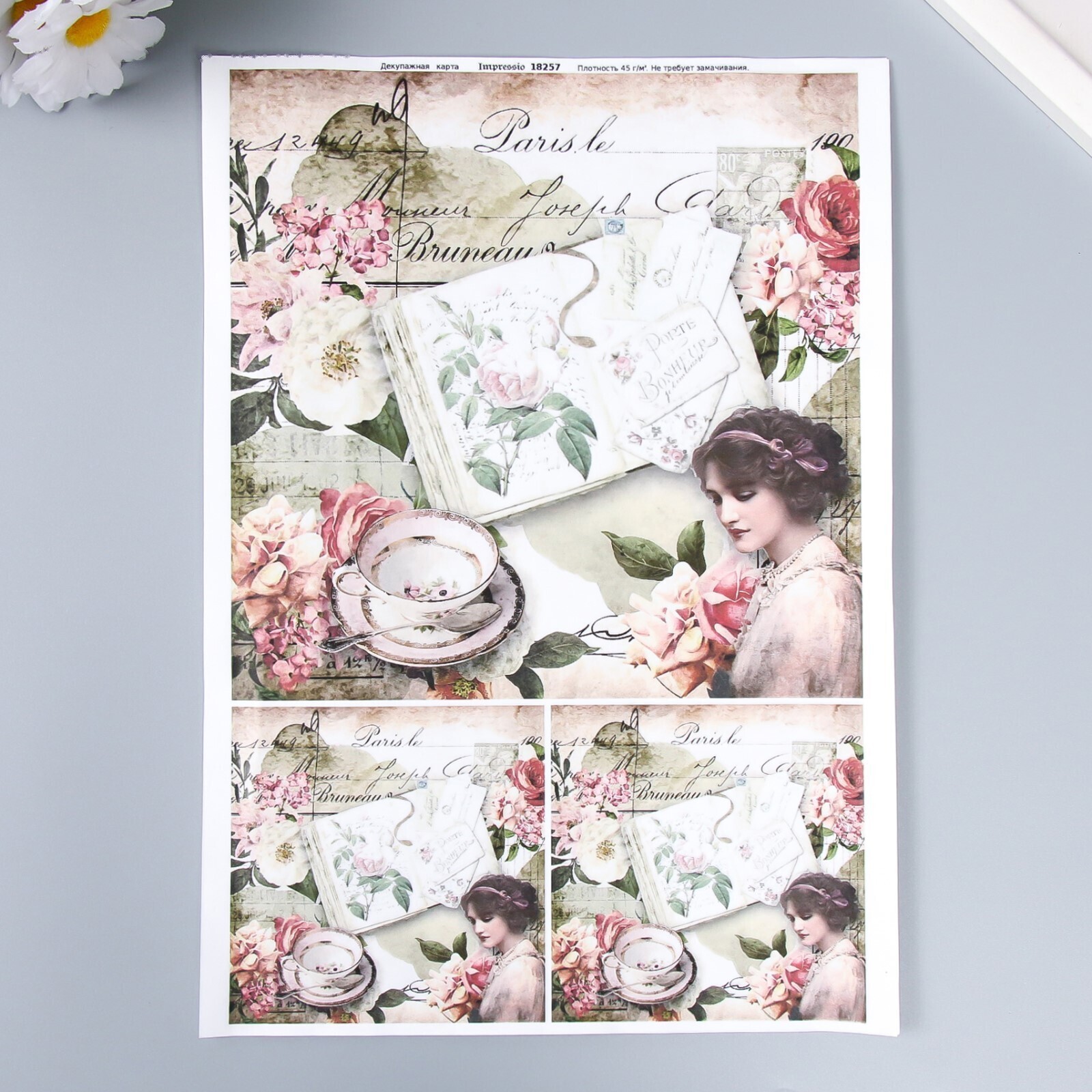 Декупажная карта "Цветы и девушка" плотность 45 г/м2 формат А4