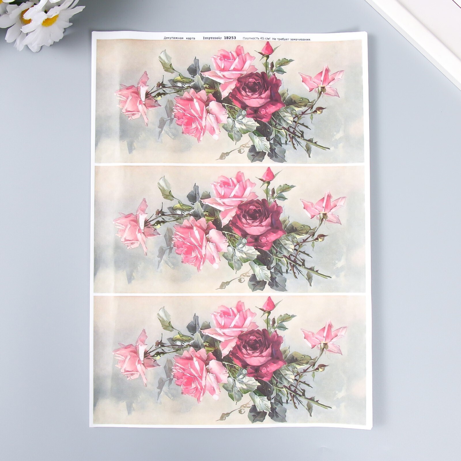 Декупажная карта "Розы" плотность 45 г/м2 формат А4