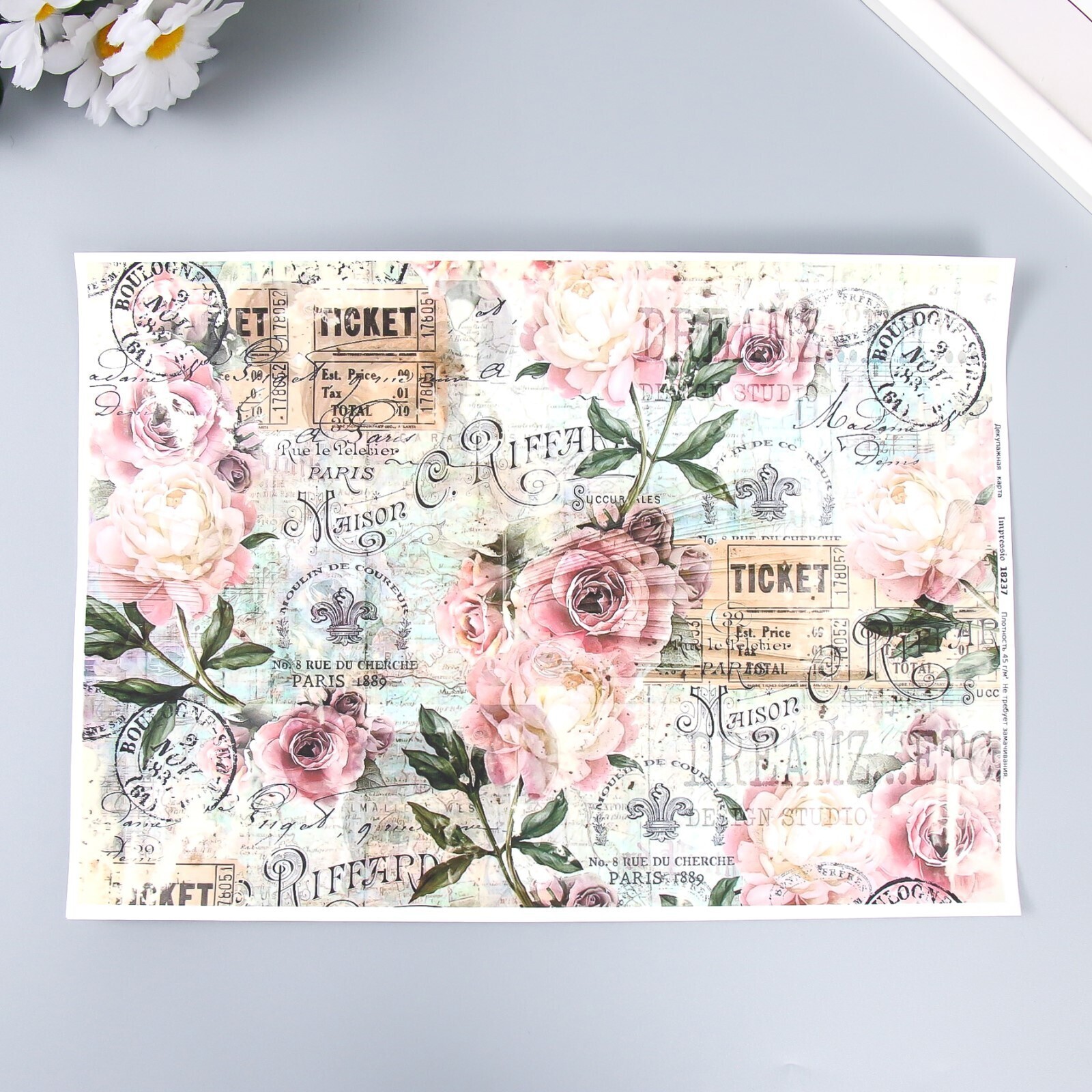 Декупажная карта "Надписи, цветы" плотность 45 г/м2 формат А4