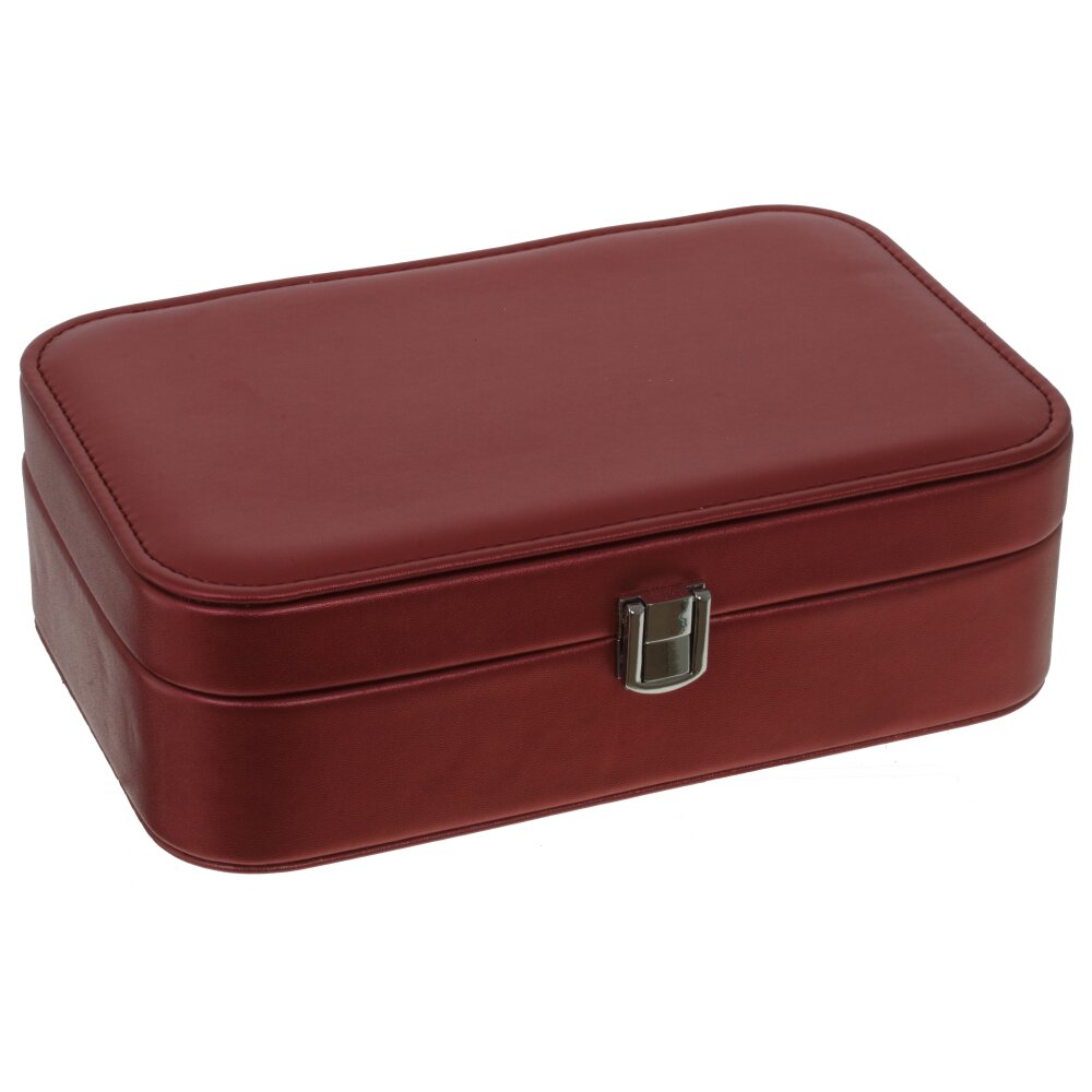 Шкатулка на одно отделение, которое разделено на несколько удобных секций. Валики для колечек и браслетов, удобное зеркальце на внутренней части крышки, разделы для крупных украшений. В общем, хозяйничать и раскладывать вам. А от нас — удобная шкатулка благородного цвета. Шикарный подарок женщине!