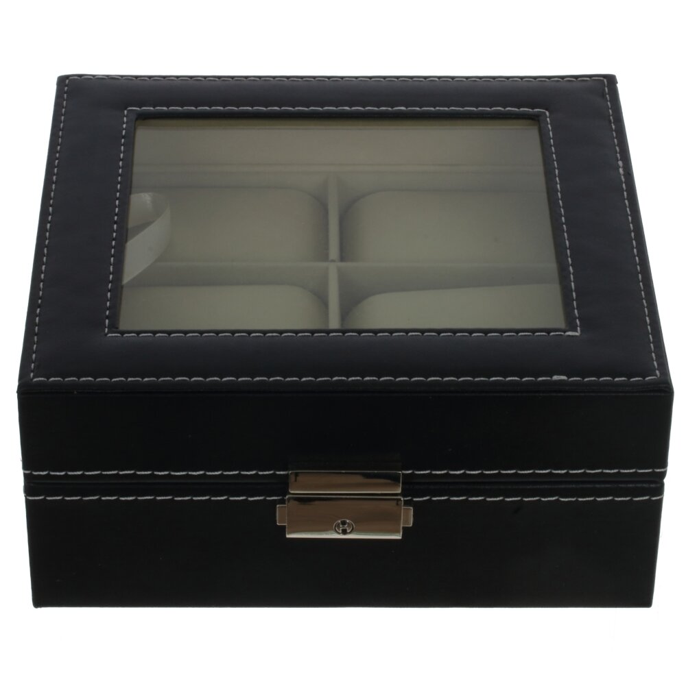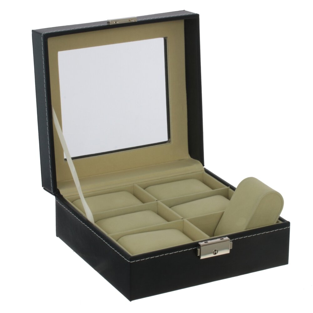 Красивая и удобная шкатулка для часов обеспечивает хранение, защиту от солнца, пыли, влаги. Крышка с прозрачным окном для лучшего обзора содержимого.