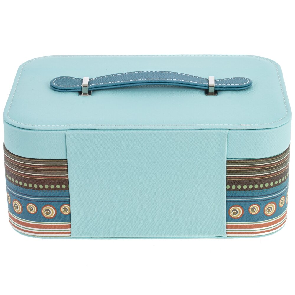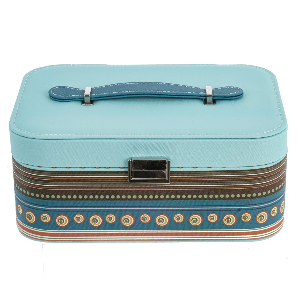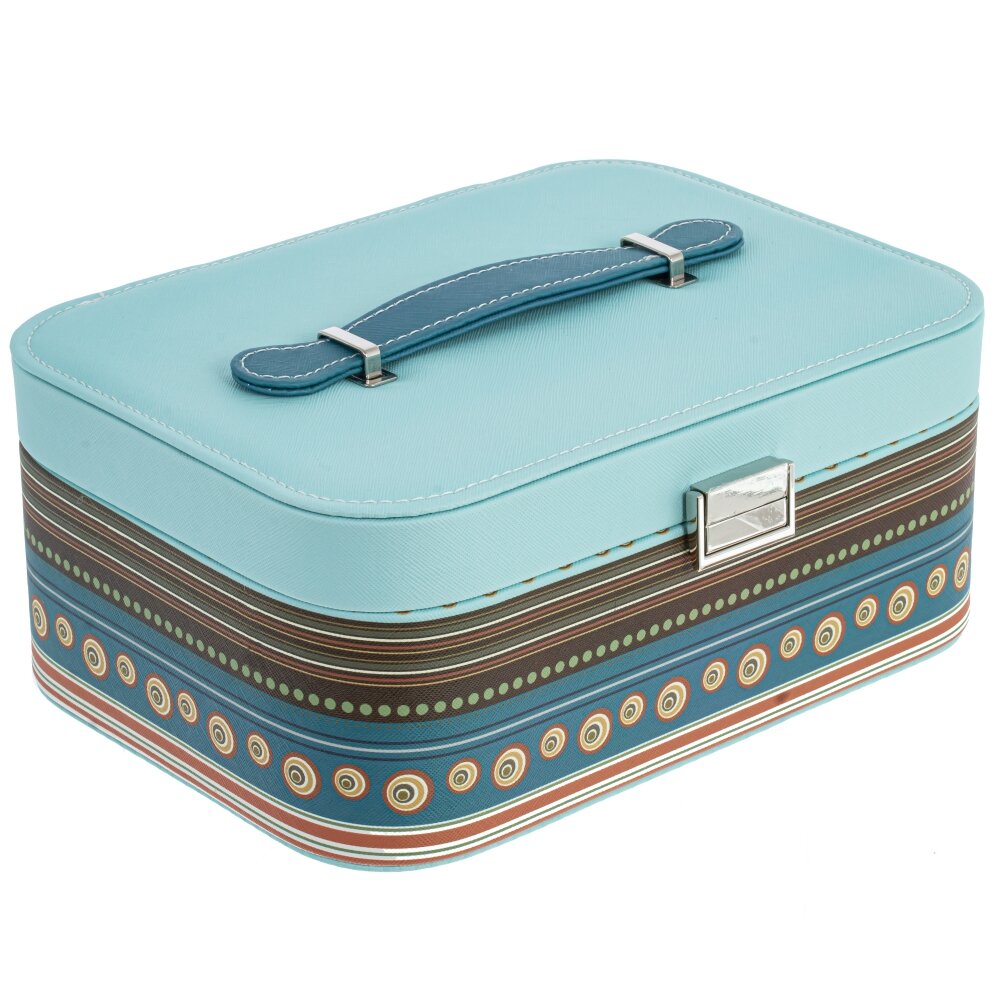 Шкатулка для украшений из экокожи. Отделка внутренней поверхности бархатистой тканью предохраняет ювелирные изделия от царапин. А зеркальце на внутренней стороне крышки – то, что всегда нужно женщине. Полезное пространство разделено на две части: верхняя - съемная и нижняя, с массой отделений, в которых можно хранить серьги, кольца, браслеты, ожерелья, цепи. Эффектный дизайн, качественная фурнитура. Замечательная вещь, которая всегда станет приятным подарком для любой женщины, в любом возрасте.