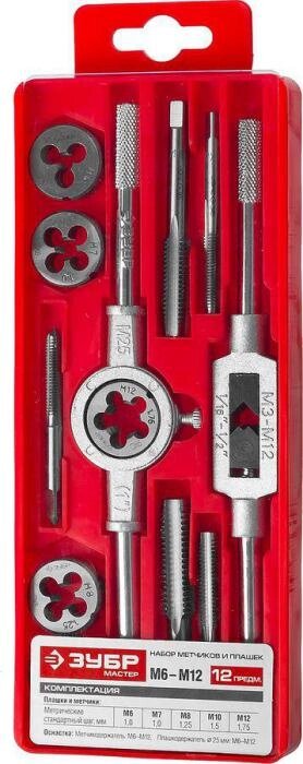 Набор метчиков и плашек ЗУБР 28121-H12, 12 предметов