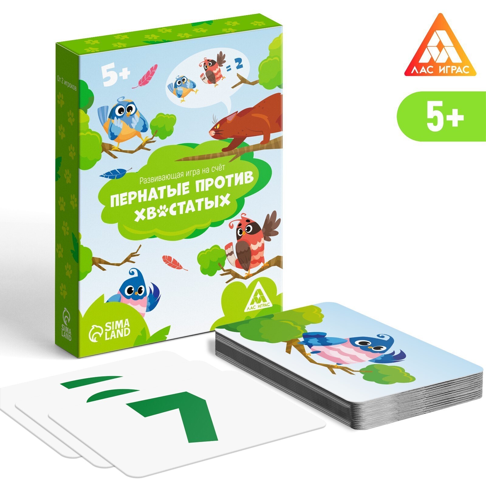 Развивающая игра на счёт «Пернатые против хвостатых», 50 карт, 5+