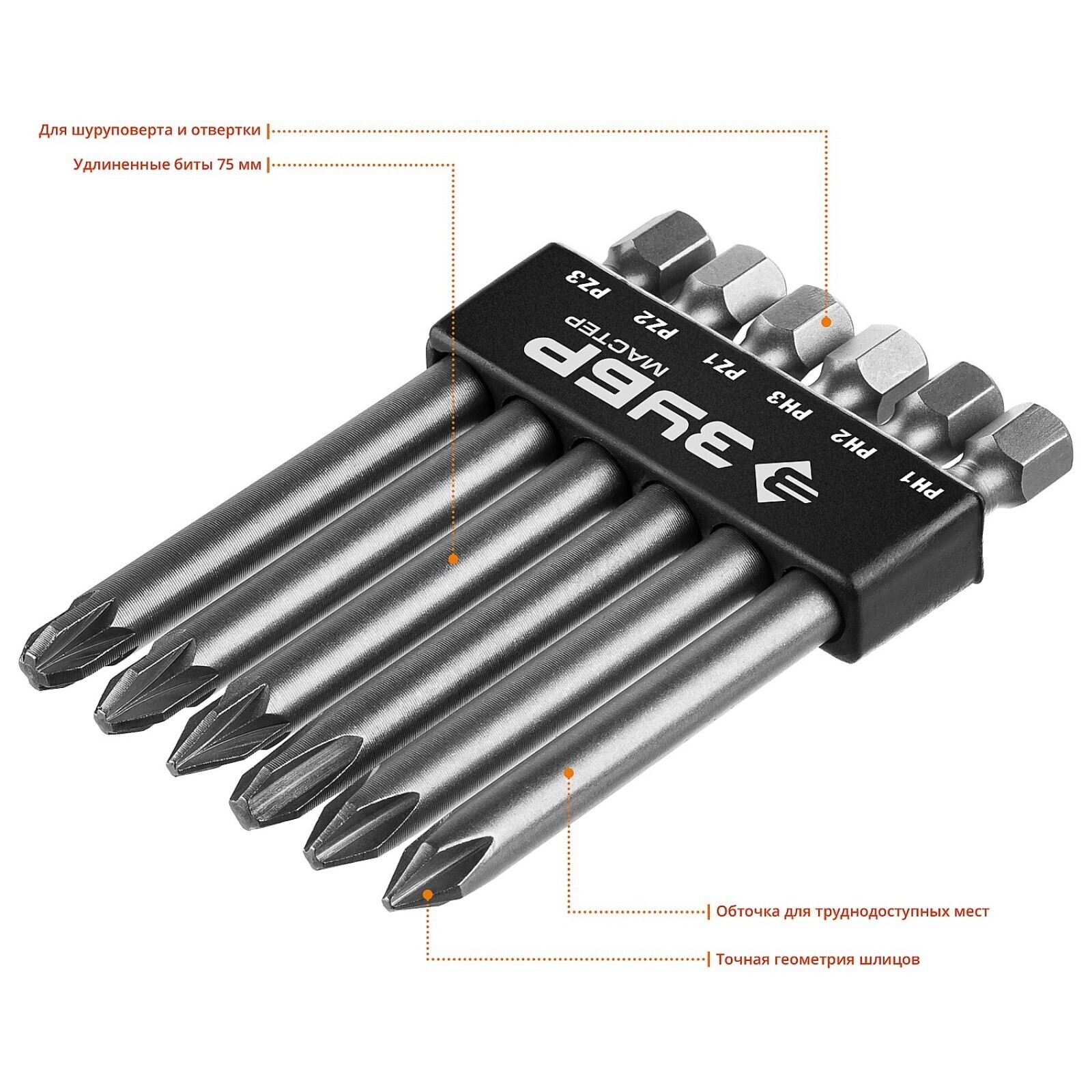 Набор бит длинные ЗУБР 26089-H6, МХ-6, CR-V