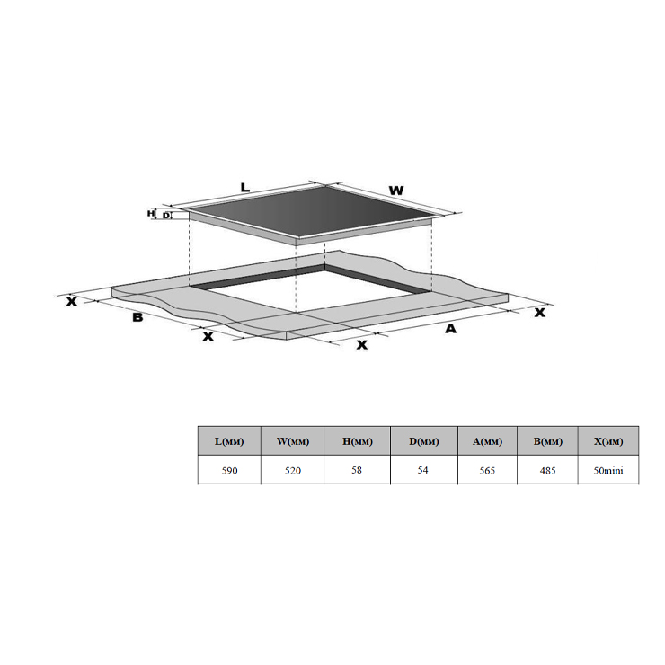 - Размеры ниши для встраивания (В*Ш*Г) 5.4х56.5х48.5