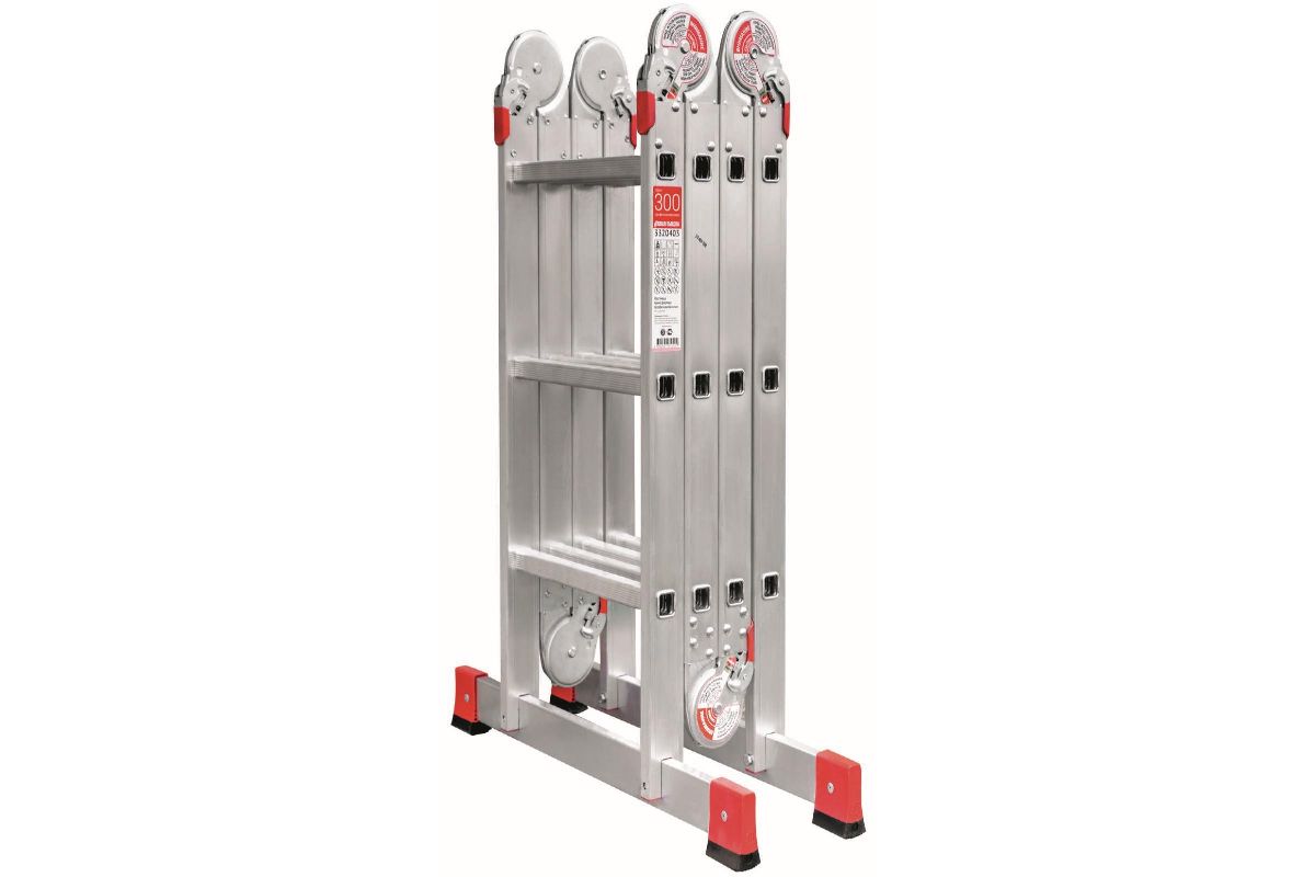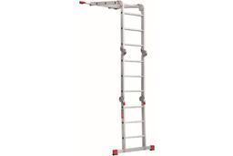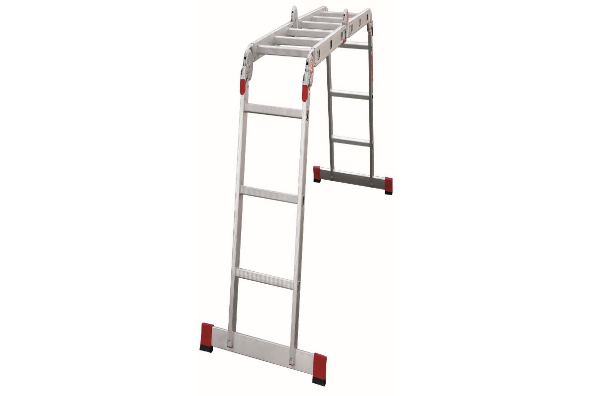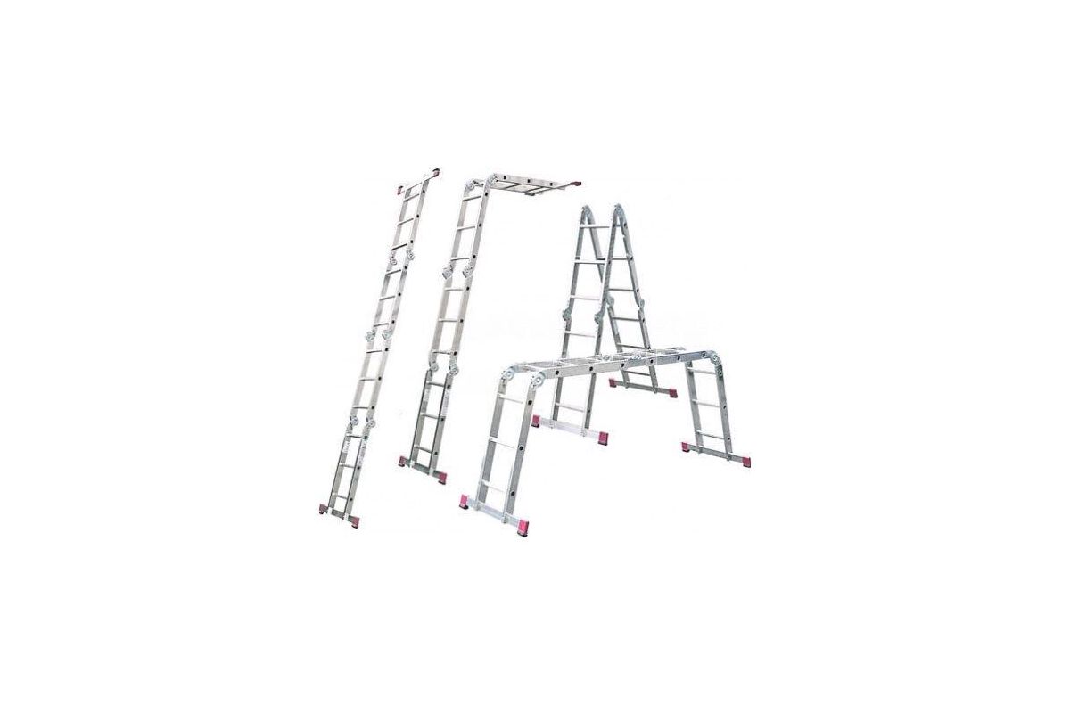Лестница-трансформер Новая Высота 4х3 отличается исключительной простотой транспортировки - модель складывается в несколько раз и помещается в багажнике легкового автомобиля. Существенно уменьшить ширину - до 40 см - позволяет съемная траверса, которая крепится к основанию лестницы при помощи стальных болтов. Шарнирные замки качественно соединяют секции между собой и позволяют приспособлению принимать форму стремянки, помоста, приставной односекционной и приставной согнутой лестницы. Дополнительные ребра жесткости укрепляют несущую конструкцию модели, благодаря чему она выдерживает нагрузку до 150 кг. Широкие ступени с рельефной поверхностью снижают вероятность поскальзывания пользователя при спуске. Для удобства эксплуатации фиксация положения секций происходит автоматически.