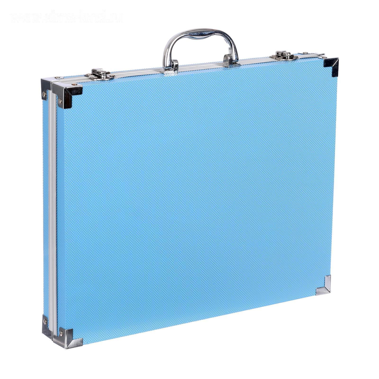 Набор состоит из: Набора цветных карандашей, акварельных красок с кистью, набора цветной пастели, восковых мелков, а так же широкий выбор цветных фломастеров. Для более удобной и продуктивной работы, в комплекте так же есть линейка, ножницы, ластик, степлер, точилка, корректор, кисть с полостью для воды, и простой карандаш. Широкий выбор канцтоваров для творчества и работы, стильный и удобный металлический портфель, отличный набор для опытного и начинающего художника