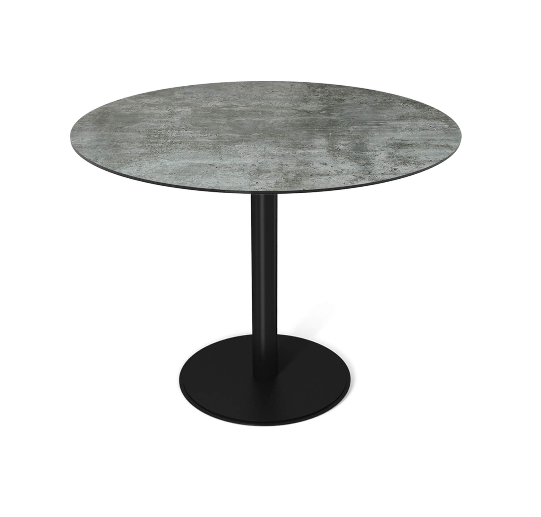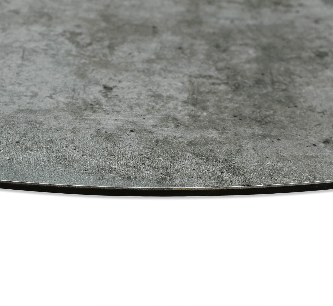 Основание не только прекрасно исполняет свою непосредственную функцию, но и служит достойным элементом дизайна интерьера помещения. Внешний облик без единой лишней детали делает готовый стол презентабельным предметом мебели. Столешница из HPL пластика смотрится изящно и невесомо, поскольку имеет толщину 12 мм. Рисунок текстуры на поверхности столешницы визуально неотличим от натурального камня.