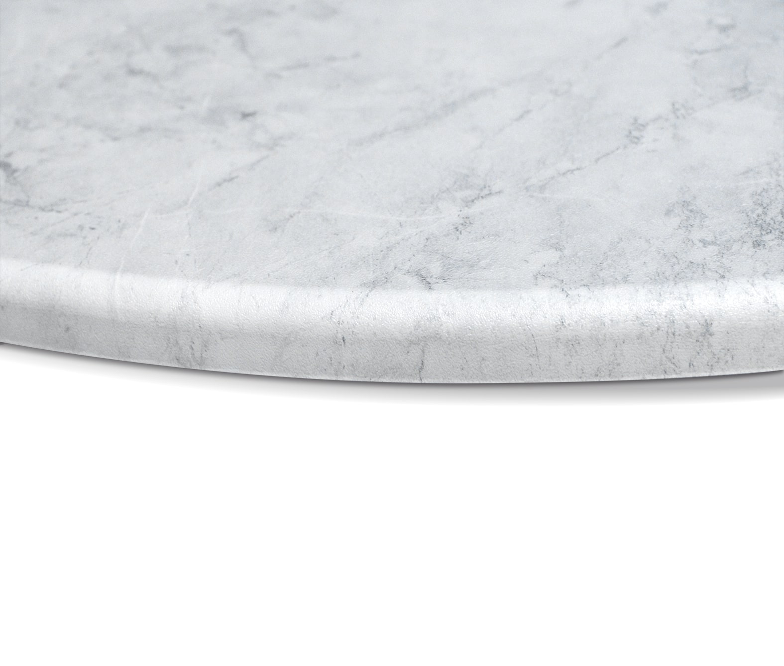 Столешница из МДФ смотрится аккуратно и привлекательно, поскольку имеет плавный закругленный переход от лицевой поверхности к боковым кромкам. имеет рельефные и структурные формы, которые визуально неотличимы от натурального дерева.