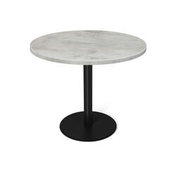 Надежная металлическая опора окрашена порошковой краской, устойчивой к механическому воздействию. Жесткость и прочность обеспечивается металлической трубой диаметром 76 мм, из которой выполнена стойка. Крепление к столешнице выполнено из металлического листа, толщиной 5 мм. Внизу лежит утяжеленное основание в форме круга.