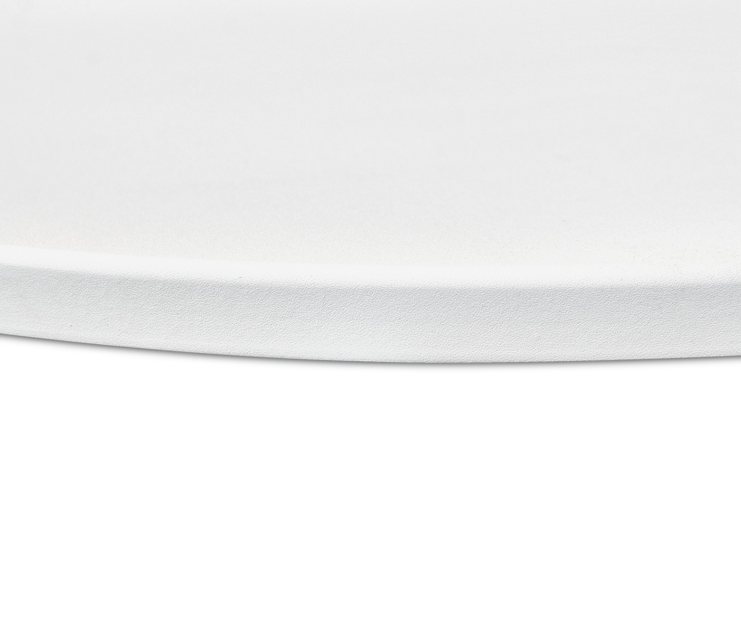 Надежная металлическая опора окрашена порошковой краской, устойчивой к механическому воздействию. Жесткость и прочность обеспечивается металлической трубой диаметром 76 мм, из которой выполнена стойка. Крепление к столешнице выполнено из металлического листа, толщиной 5 мм. Внизу лежит утяжеленное основание в форме круга.