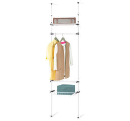 Мечта для любой гардеробной! Эта система предлагает достаточно места для платьев, пальто, пиджаков, брюк и рубашек. Штанга, две полки и корзина (размер каждой 68 на 26,5 см.) можно регулировать по высоте и менять местами.