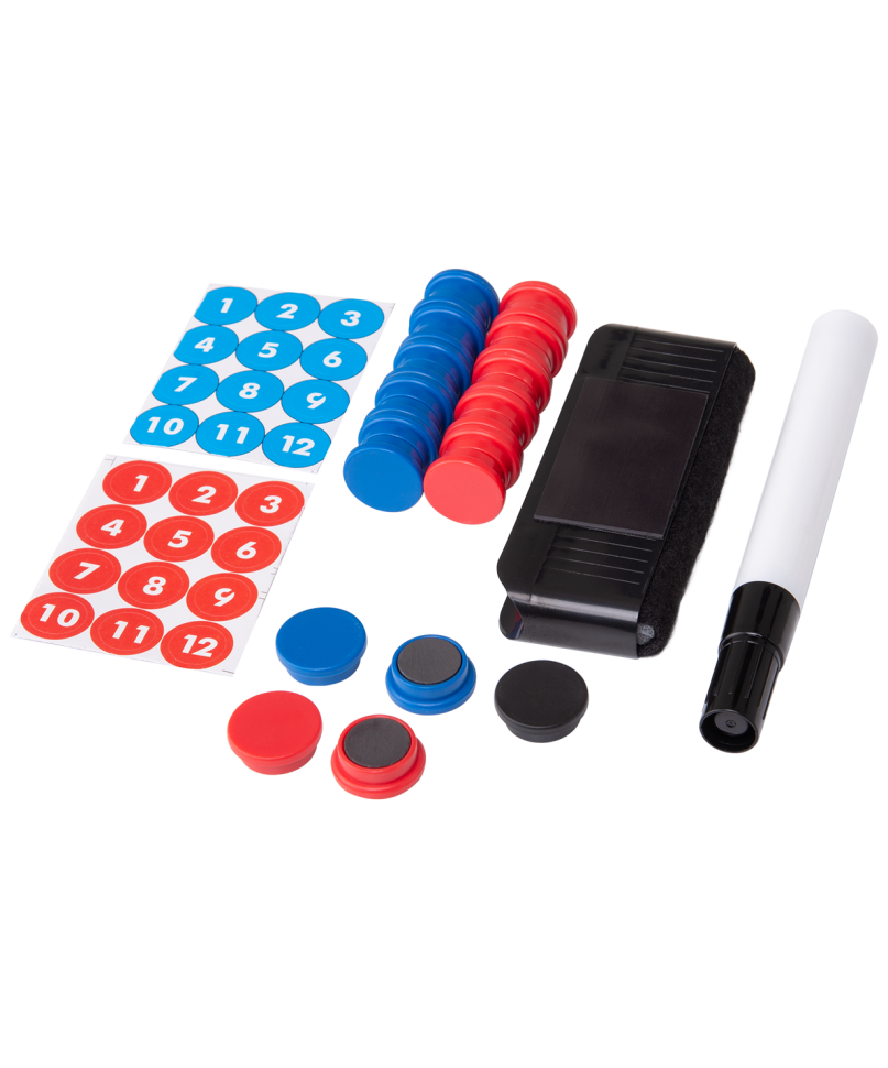 Дополнительный набор фишек для тактической доски Jogel. Состоит из пронумерованных фишек разных цветов, маркера, губки для стирания. 12 фишек красного цвета 12 фишек синего цвета 1 фишка черного цвета маркер губка для стирания Характеристики: Комплектация: 12 фишек красного цвета, 12 фишек синего цвета, 1 фишка черного цвета, маркер, губка для стирания Габариты, см: 10х2х15 Вес, г: 170