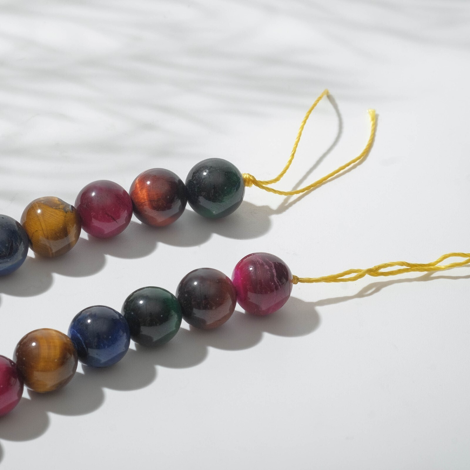Круглые гладкие каменные бусины сделаны из тигрового, бычьего и кошачьего глаза. Оттенок может немного отличаться от представленного на фотографии в зависимости от настроек экрана. Бусины могут различаться по форме и размеру. Возможны неровности естественного происхождения.
