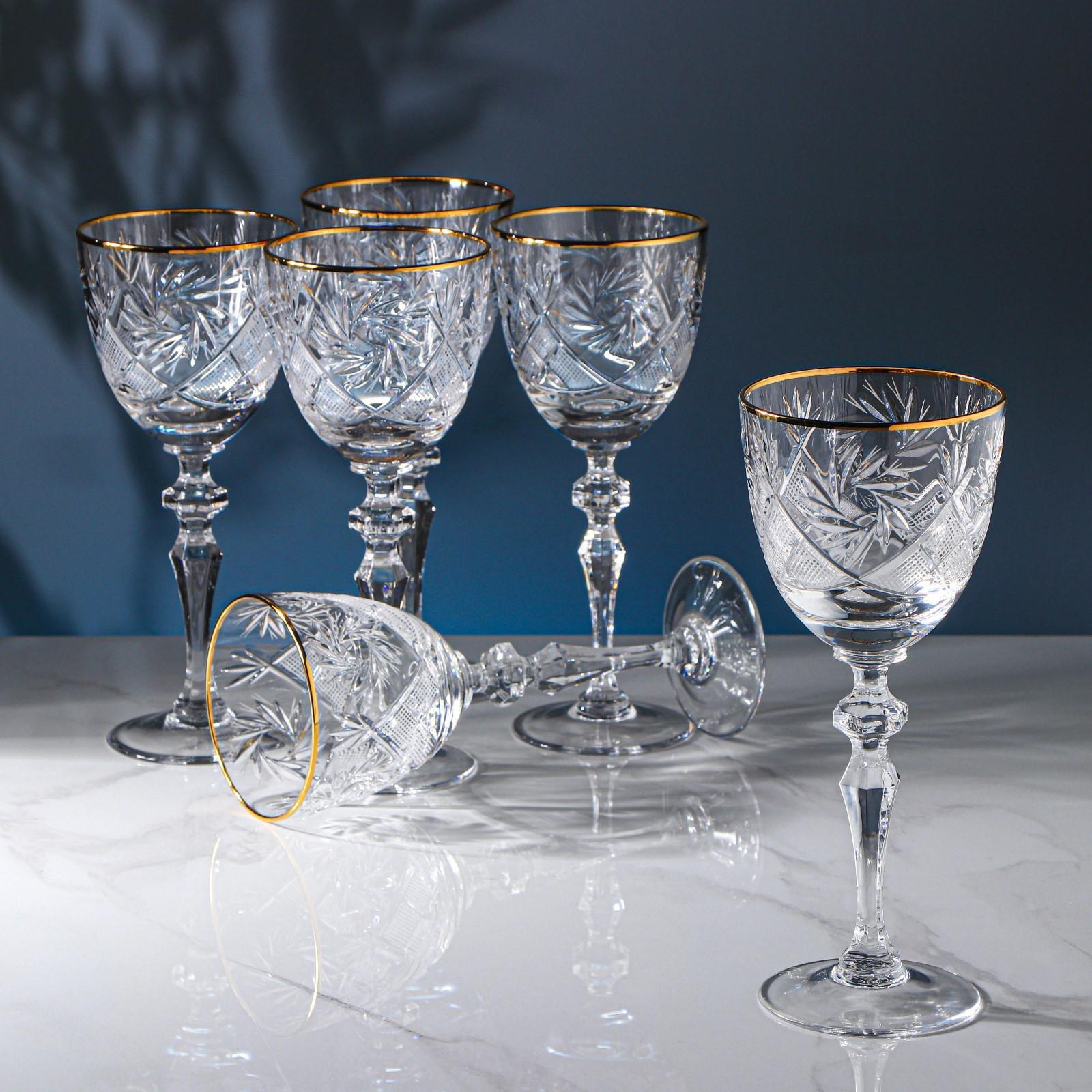 Набор фужеров хрустальных для вина «Мельница», 250 мл, отводка золотом, 6 шт
