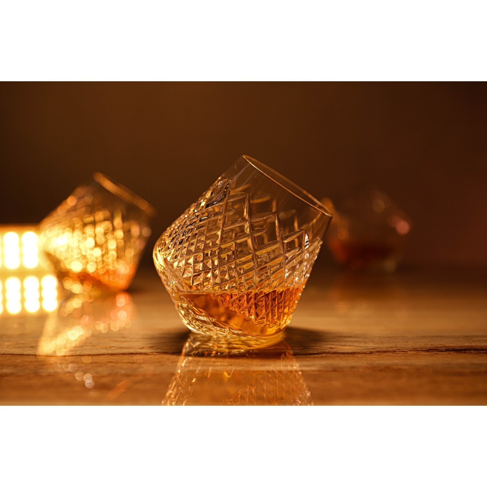 Набор «Неваляшка» состоит из двух хрустальных фужеров. Чаша бокала идеально располагается в ладони, тепло которой полностью раскроет и эффектно подчеркнёт аромат и вкус напитка. Изюминка посуды - отсутствие хрупкой ножки, что делает бокал уникальным. Секрет пьяных бокалов в том, что дно бокалов не плоское, а сферическое, поэтому бокал можно перекатывать вокруг своей оси. Бокалы с утолщением снизу, словно юла, во время вращения сохраняют устойчивость и не проливают содержимое, даже на мягкой поверхности.
