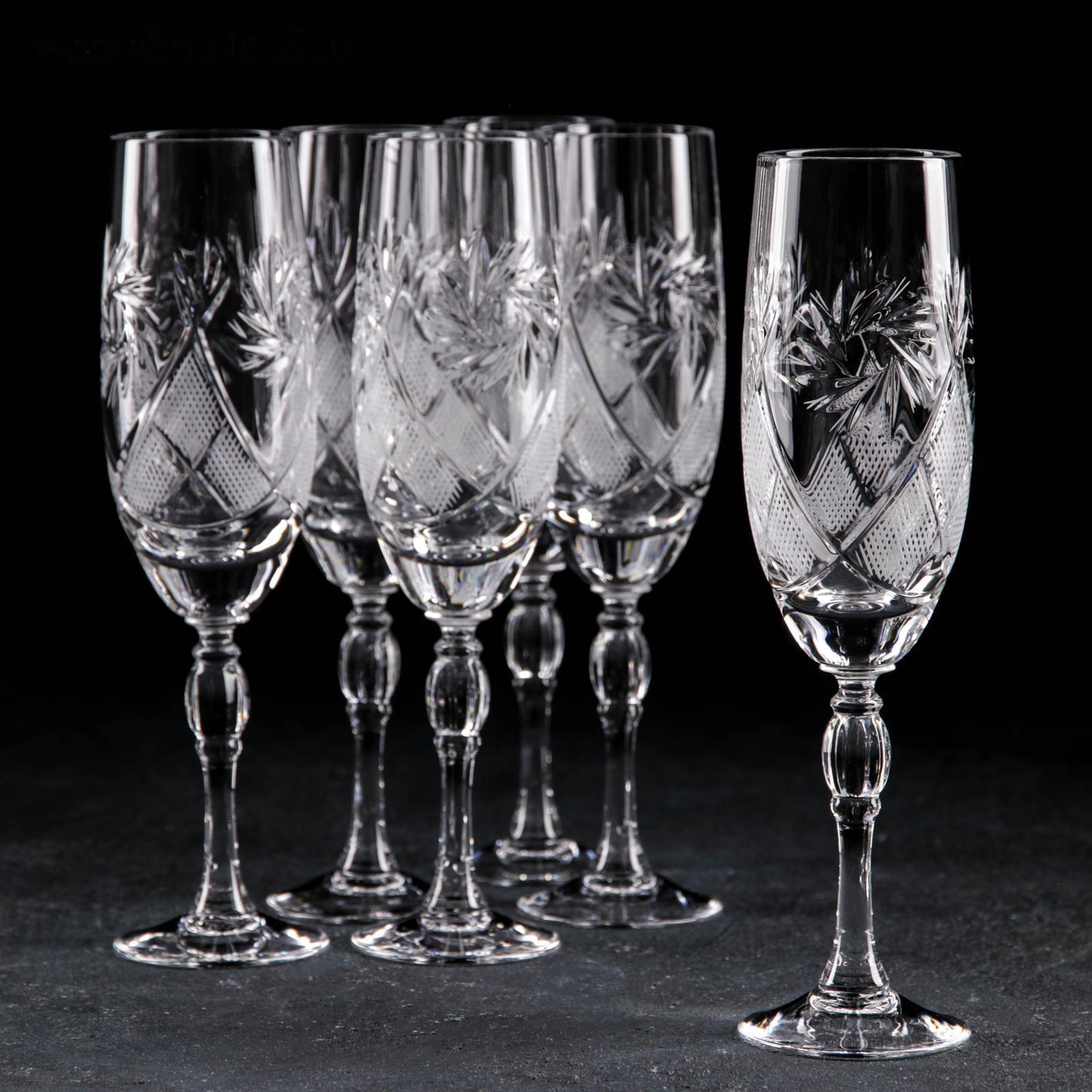 Набор фужеров хрустальных для шампанского «Мельница», 170 мл, 6 шт