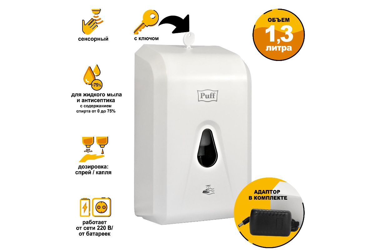 Автоматический сенсорный дозатор Puff-8185 для жидких растворов, в том числе с содерданипем спирта не более 75%.