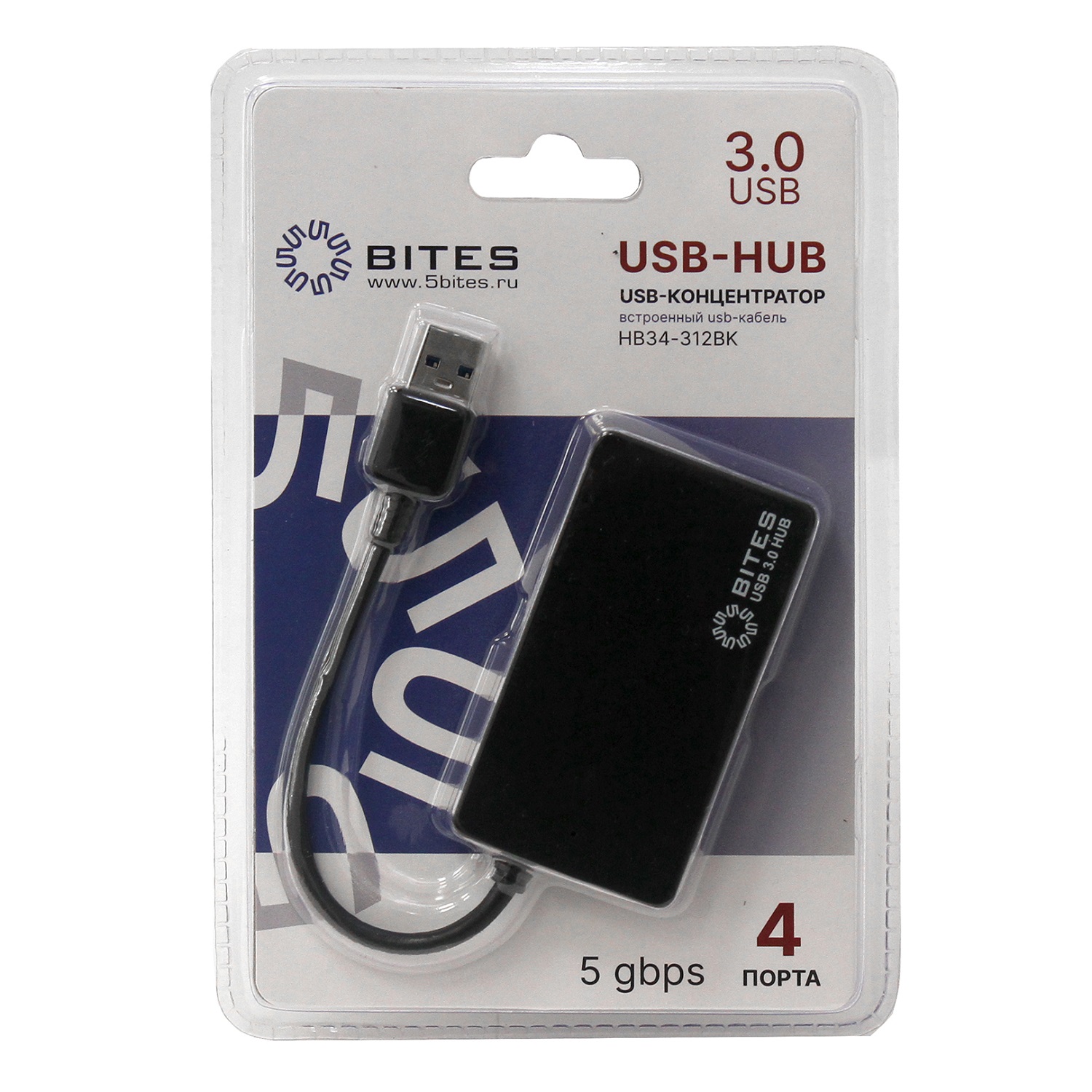 В наличии 979 РUSB-концентратор 5bites 4xUSB 3.0 USB Plug HB34-312BK Black