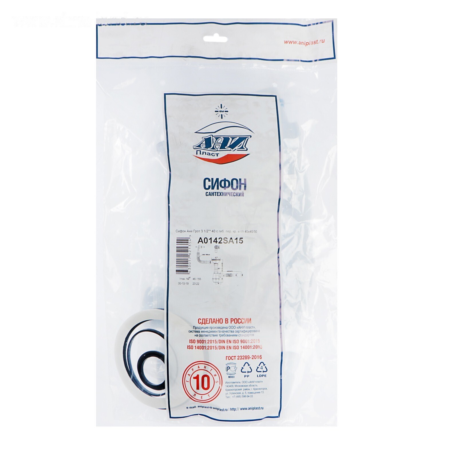 Сифон "АНИ Пласт" Грот A0142SA15, 3 1/2"х40 мм, круглый перелив, с гофротрубой 40 x 40/50 мм