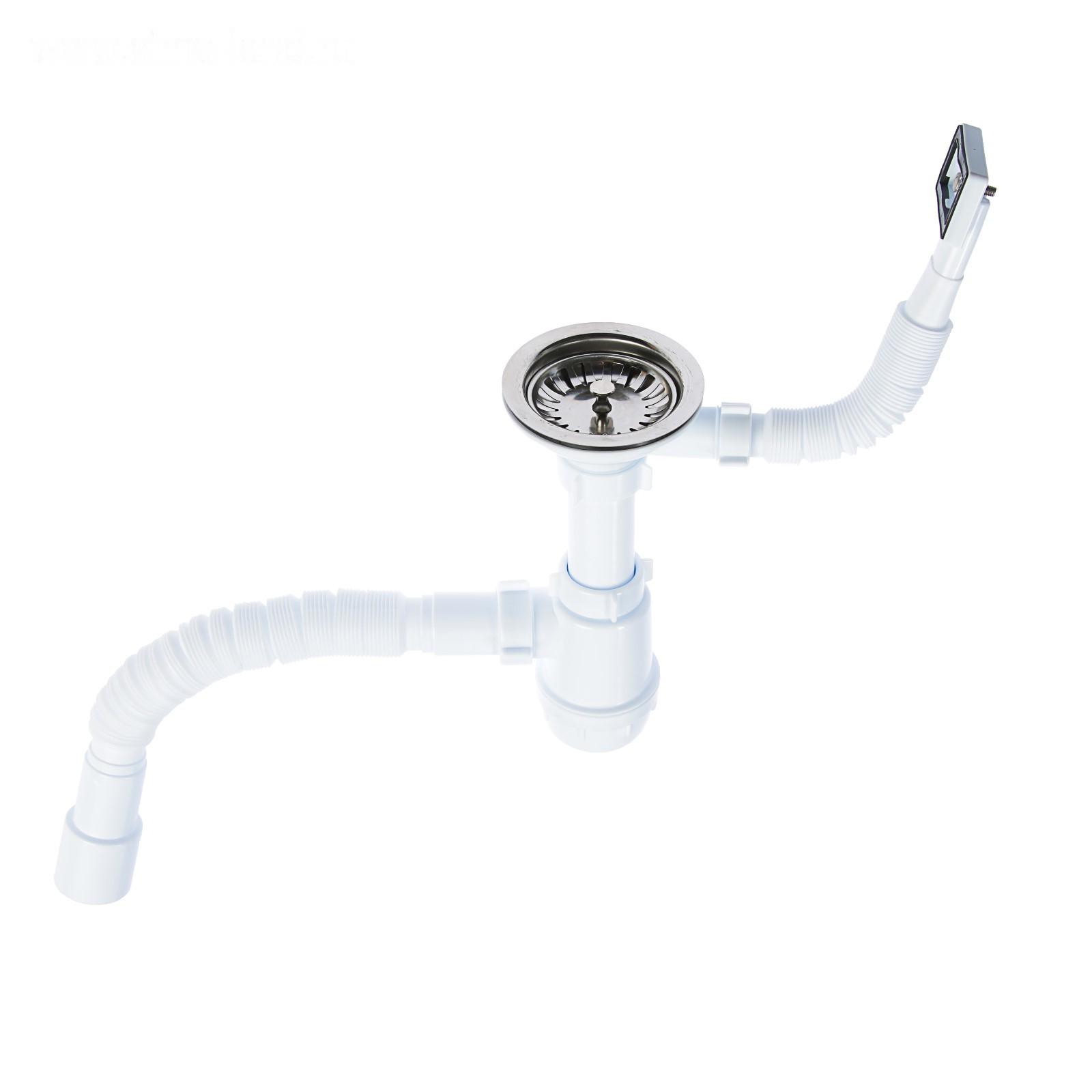 Выполнен с разборным выпуском и нержавеющей решёткой, с жёстким переливом для моек из композитных материалов. Выход для подключения к канализации — 40 мм.