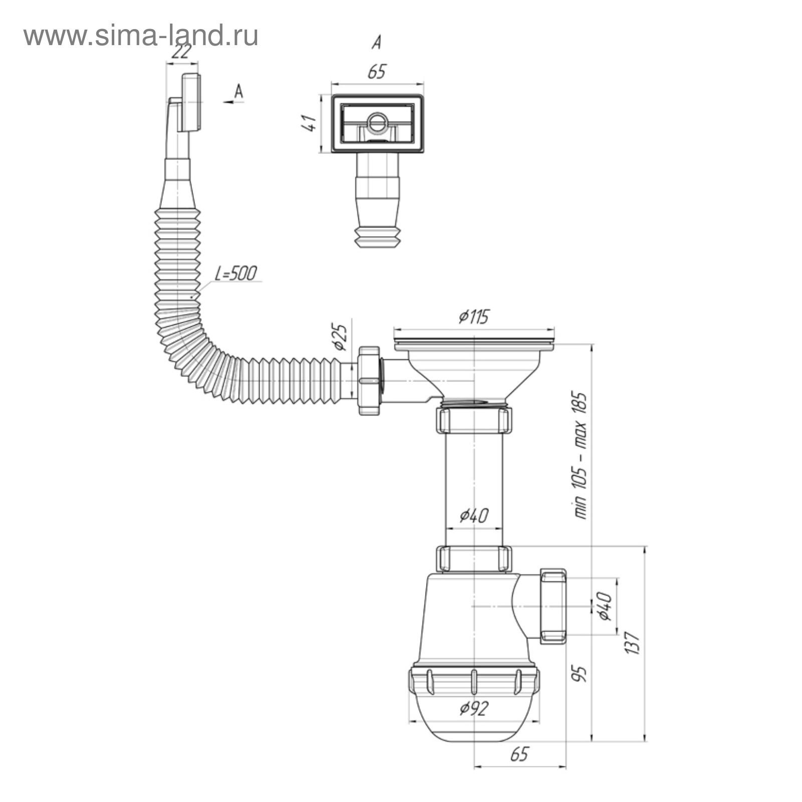 Сифон бутылочного типа с увеличенным корпусом предназначен для кухонных моек с диаметром сливного отверстия 90 мм.