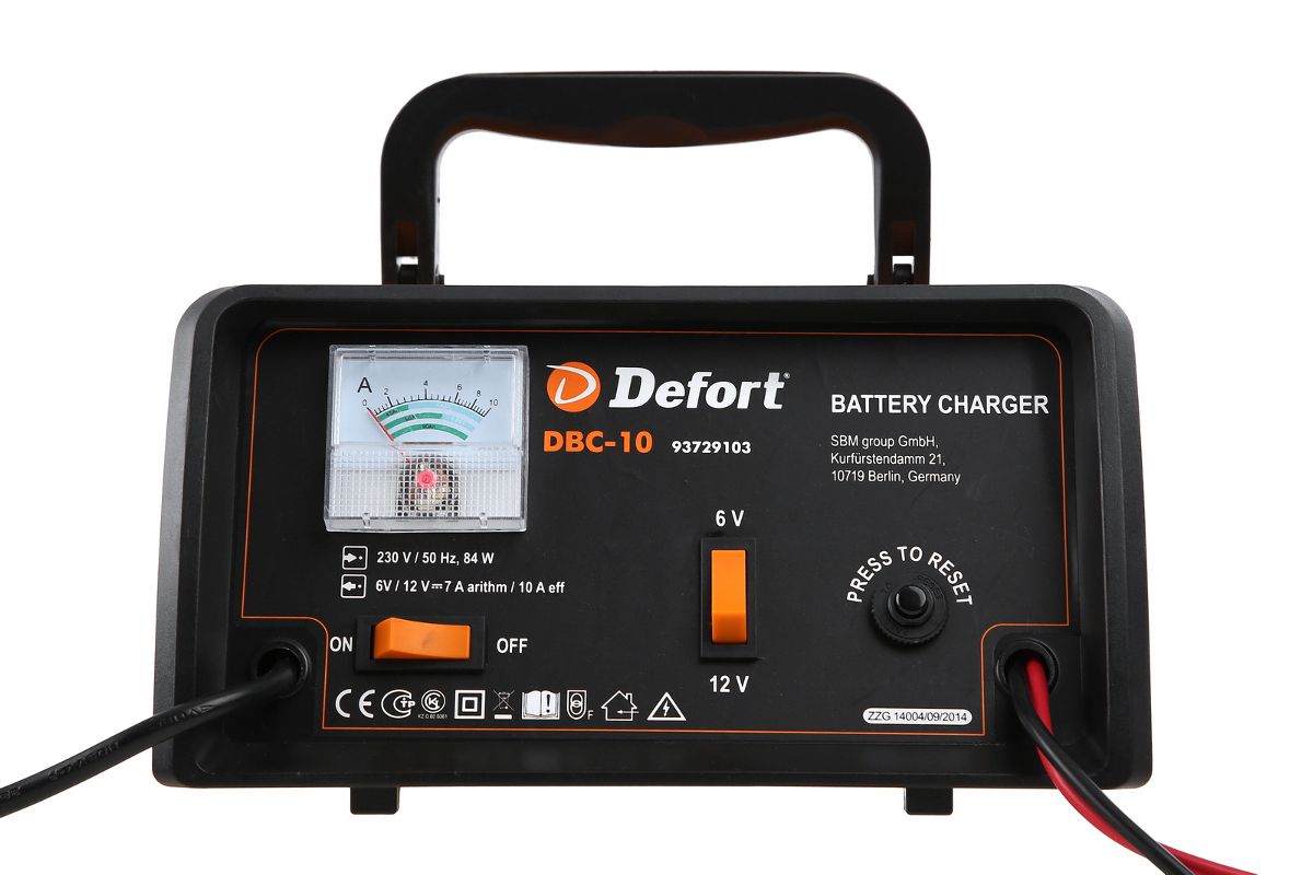 Зарядное устройство DEFORT DBC-10 7-10А 20-120Ач 2м 6-12В 3.5кг 84Вт 230-0В 15А 7..10 А, 20- 120 Ач, 2 м, 6-12 В, , Нет тип, 3,5 кг, 84 Вт, 230-0 В, 15 А