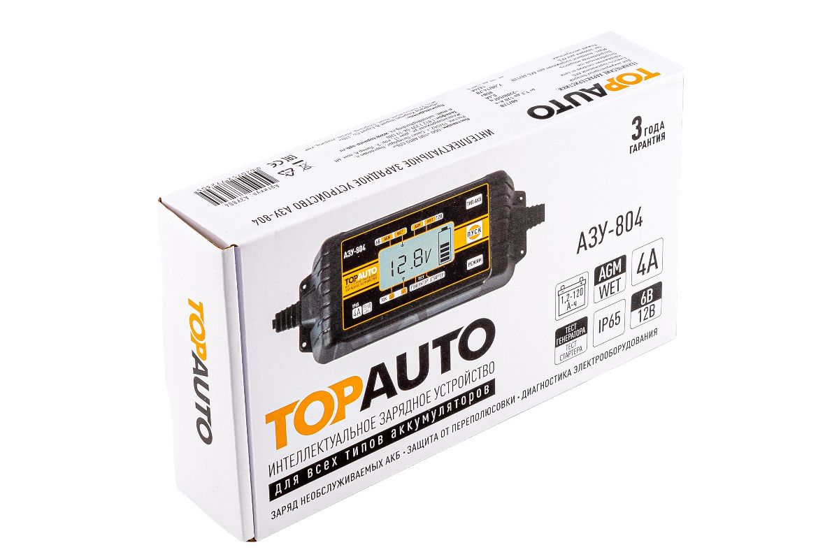 Автомат. зарядное устройство ТОП АВТО АЗУ-804 4А, для 6/12В-АКБ до 120А-ч, AGM, IP65