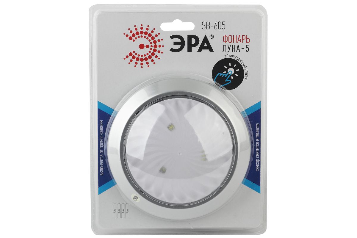 Фонарь ЭРА SB-605 пушлайт луна-5 флюор.сенсор 4xАА серебр. 1 шт в бл.