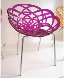 Ажурне крісло Flora-ML подібне обрисами до ніжної квітки. Плавні вигини крісла, сидіння й спинка, що забезпечують зручну посадку, стійкі ніжки роблять його максимально комфортним. Сидіння виготовлено з полікарбонату, основа — металева, хромована, ніжки обладнані протиковзними поліуретановими заглушками. Крісло виготовлено з міцних матеріалів, стійких проти подряпин, механічних пошкоджень, впливу вологи. Чудово доповнить інтер'єр вітальні, спальні, обідньої зони. Може бути використано для облаштування приміщення кафе, ресторану. Рекомендується використовувати в приміщенні. Крісла штабелюються — до 4 шт.