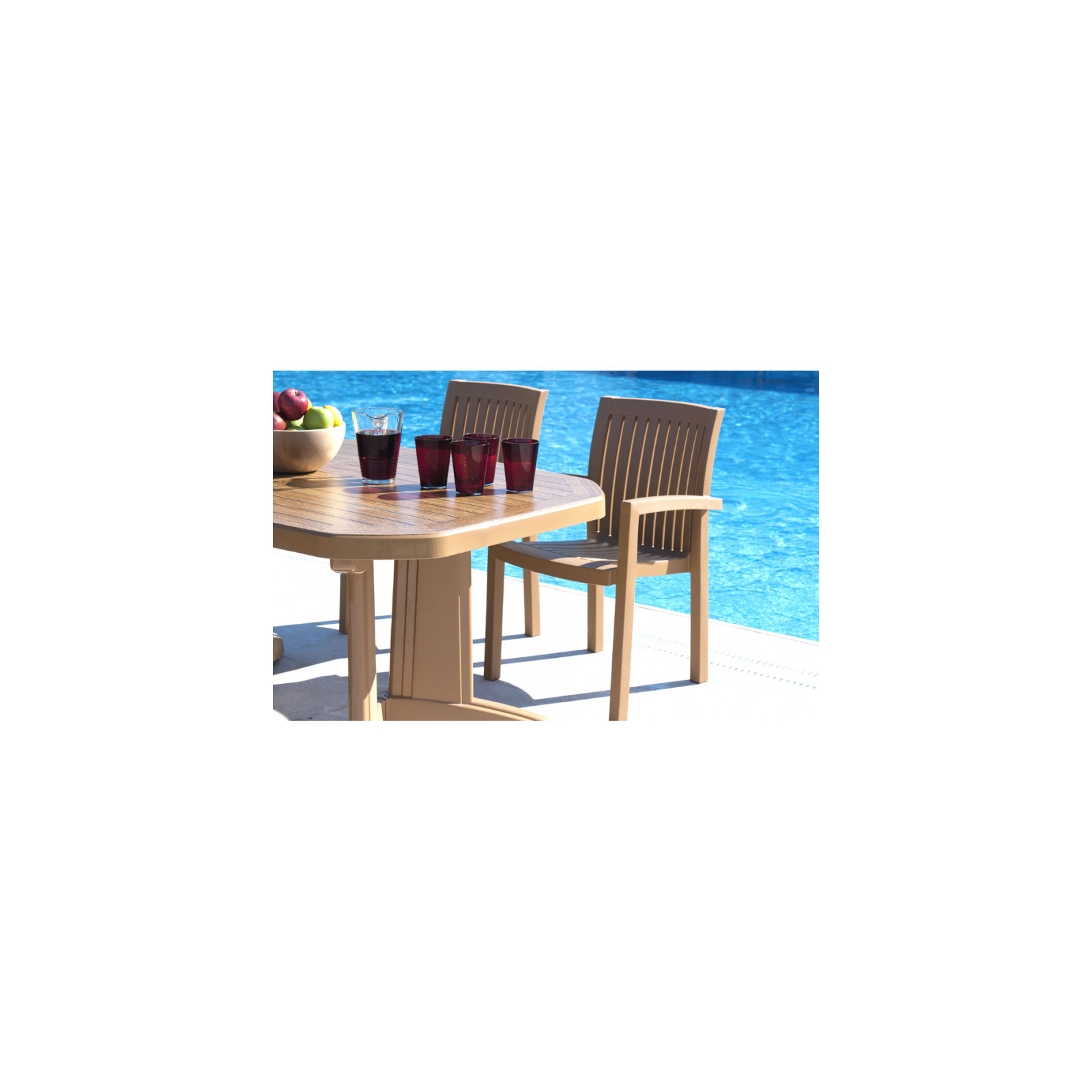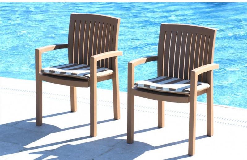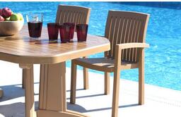 Нета - універсальне і практичне крісло з покриттям що імітує текcтуру дерева, прикрасить садову ділянку або літню терасу заміського будинку. Висока спинка і широке сидіння забезпечують комфорт і зручність в процесі використання. Завдяки моноблочній конструкції і високій якості матеріалів виріб збереже відмінний зовнішній вигляд і бездоганну якість протягом усього терміну служби. Крісло виготовлено з поліпропілену, стійкий до дії вологи, УФ-випромінювання, до перепадів температур. Призначено для використання як усередині приміщення, так і на вулиці. Штабельований.