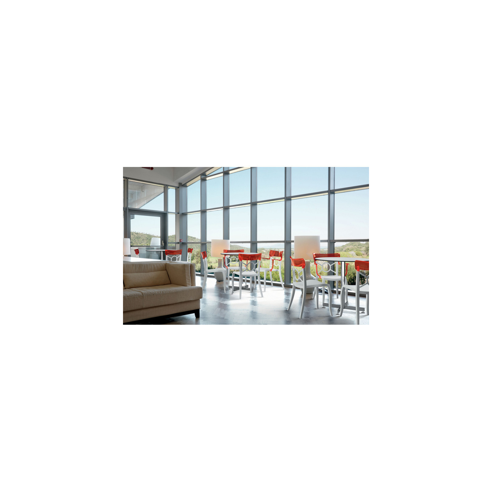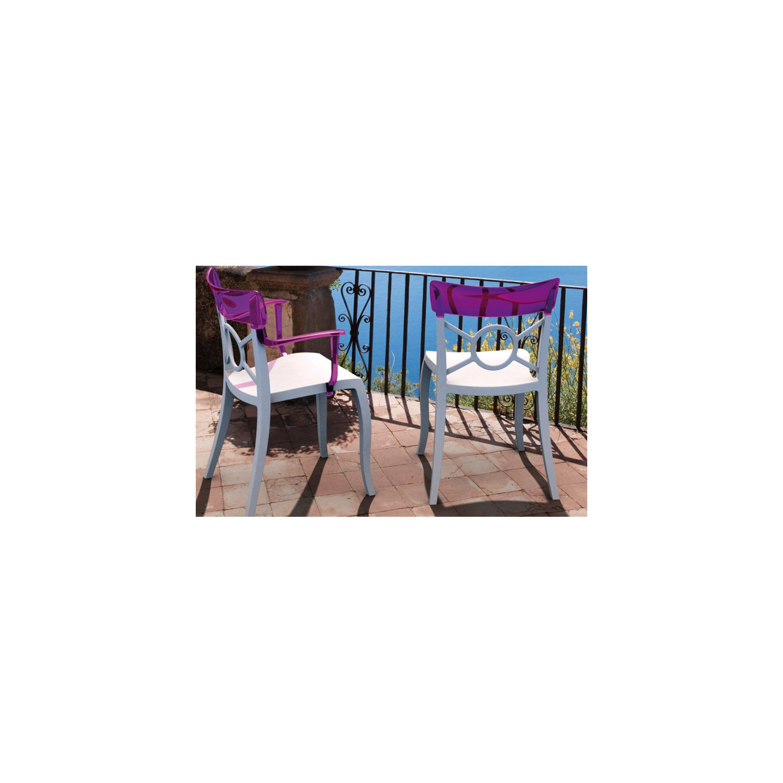Стілець Opera-S виглядає витончено та оригінально, завдяки вдалому поєднанню форми, кольору та текстури. Верх спинки виготовлений з полікарбонату, основа-поліпропілен, на ніжках протиковзні поліуретанові заглушки-матеріали міцні, стійкі до подряпин, механічних пошкоджень, вологи, УФ-випромінювання. Красиво і стильно виглядає у різних інтер'єрах віталень, спалень, кухонь та обідніх зон, також чудово доповнить літню терасу, кафе та ресторани. Призначено для використання всередині приміщення та на вулиці.