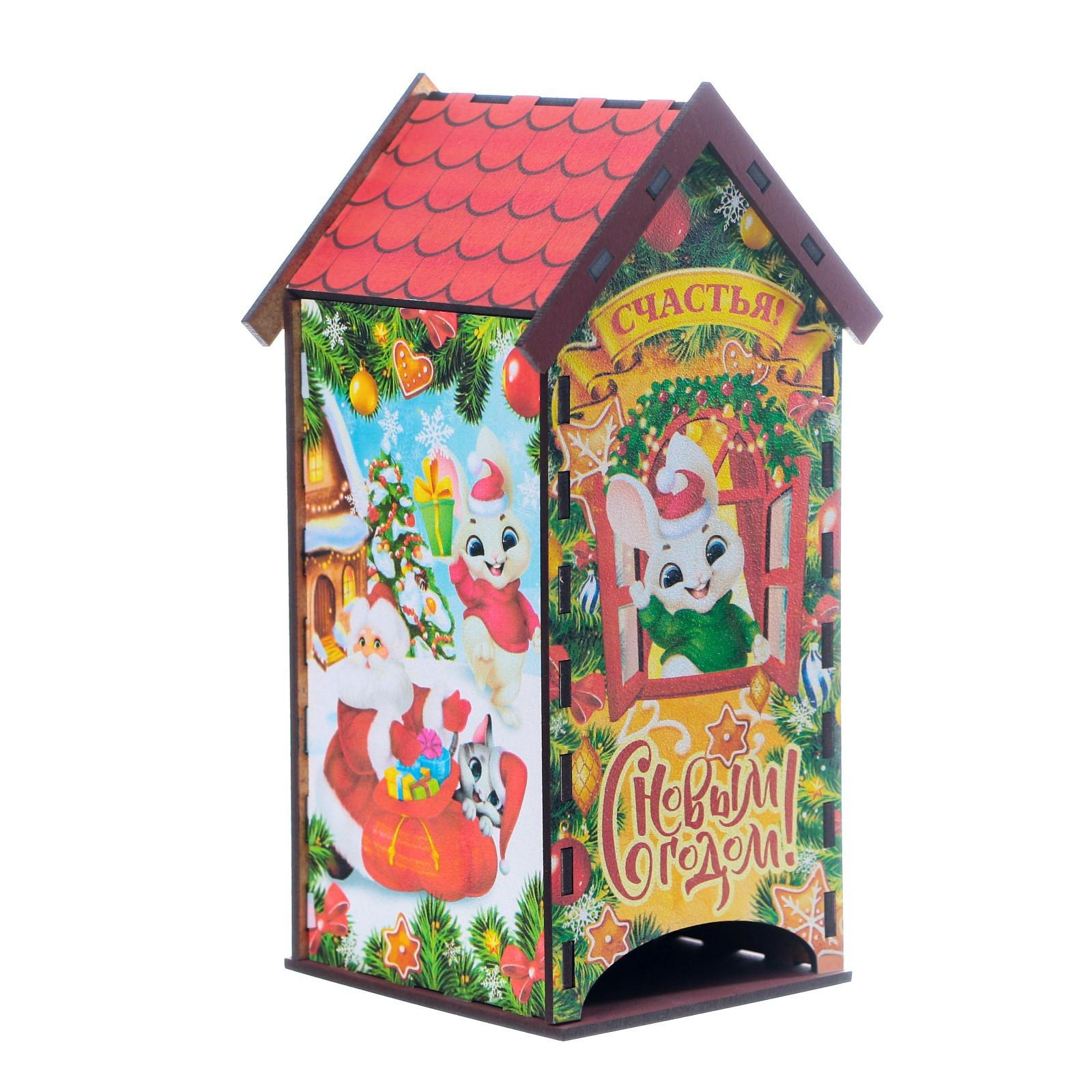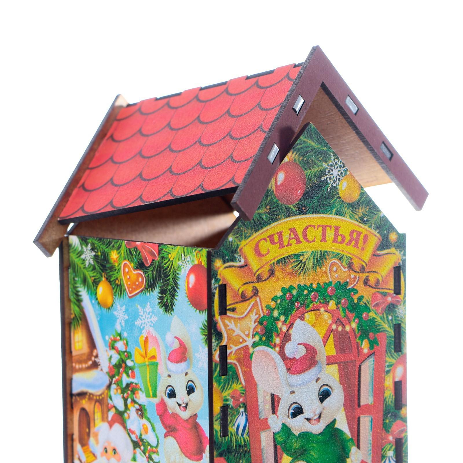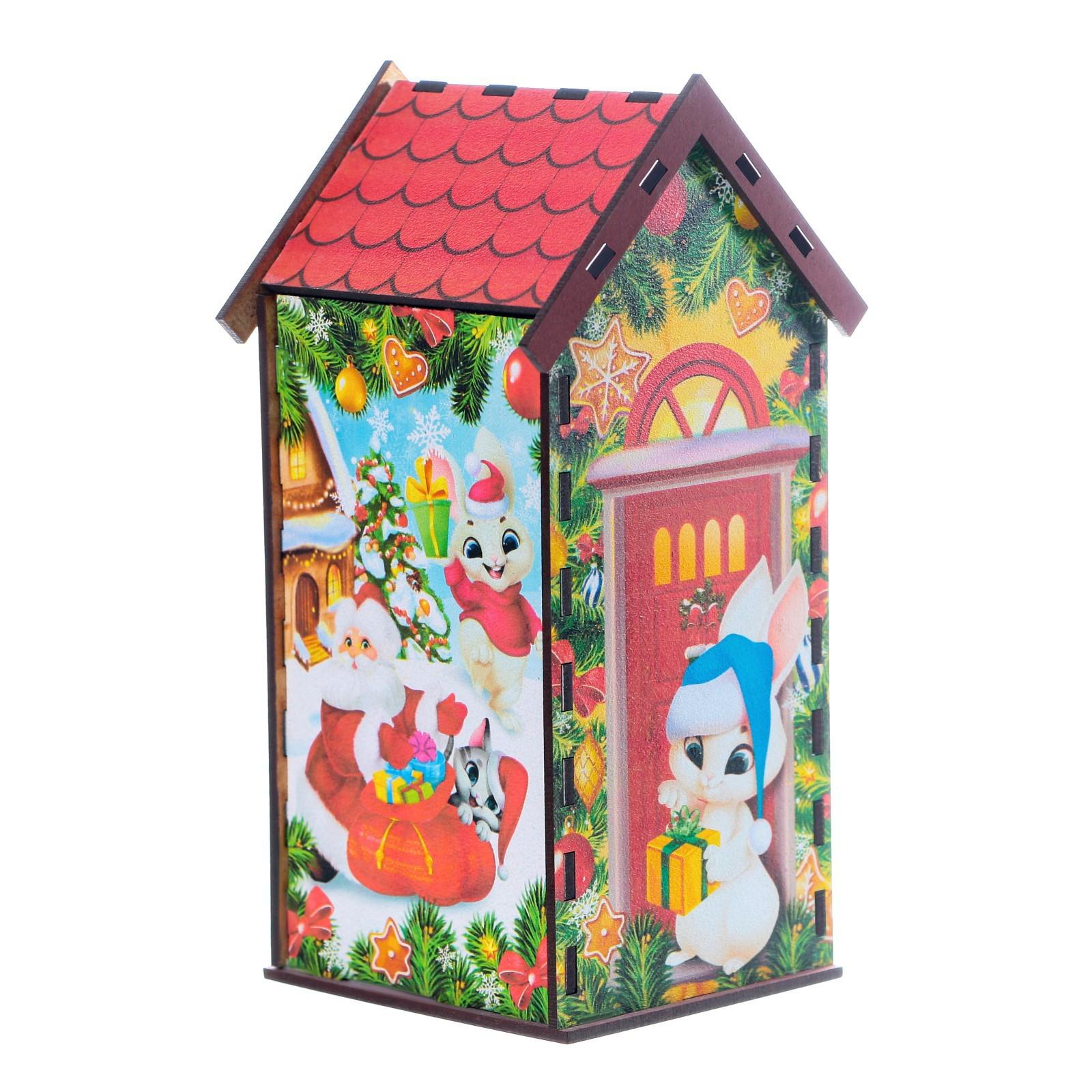 Домик выполнен из материала ХДФ, а красочность рисунка задаётся благодаря оклейке полиграфией.