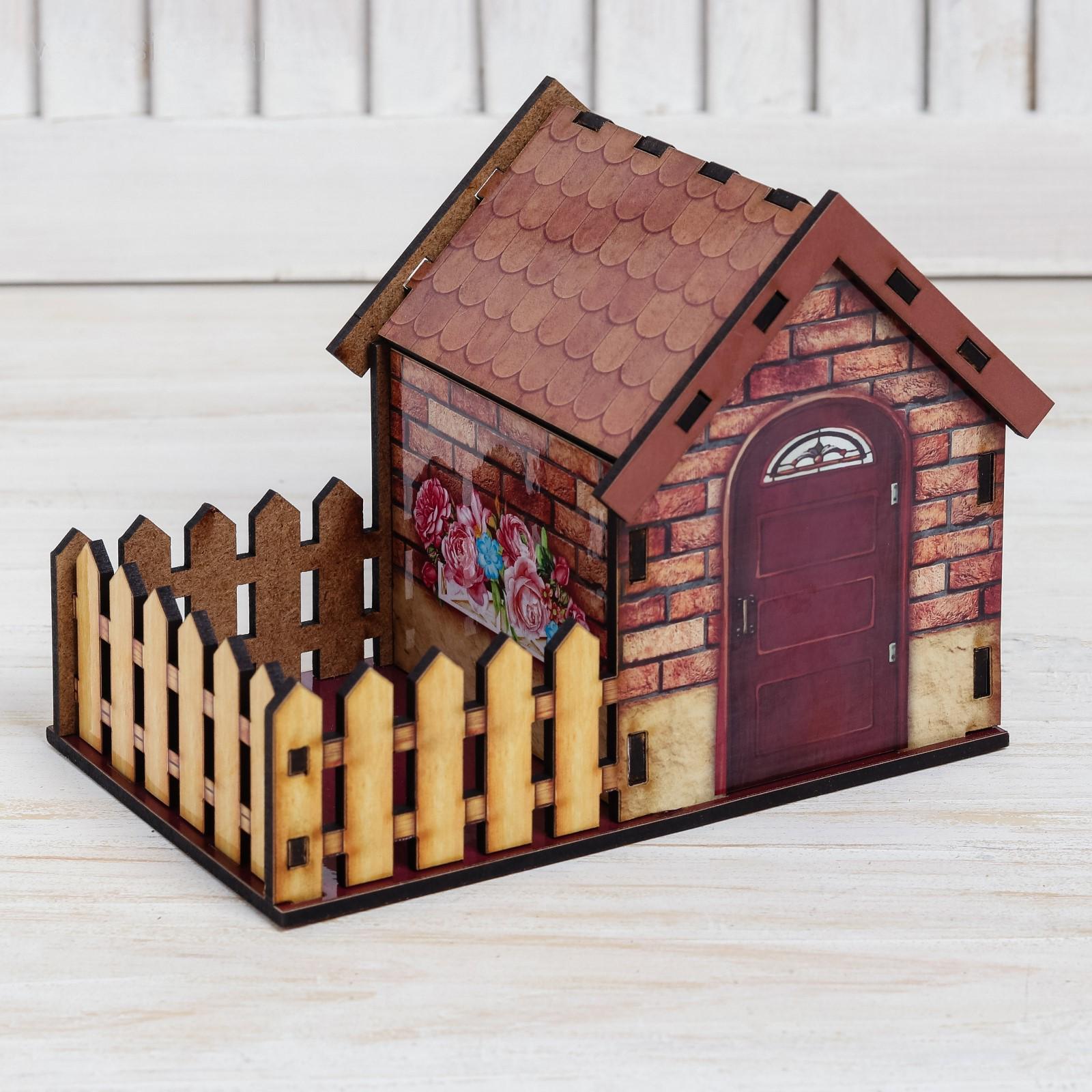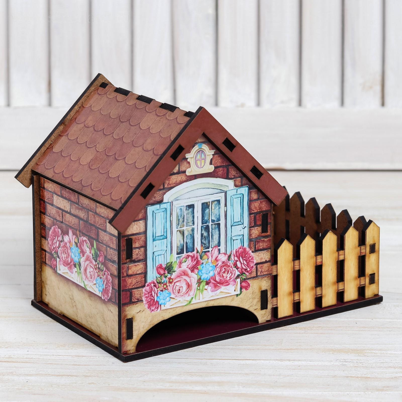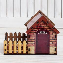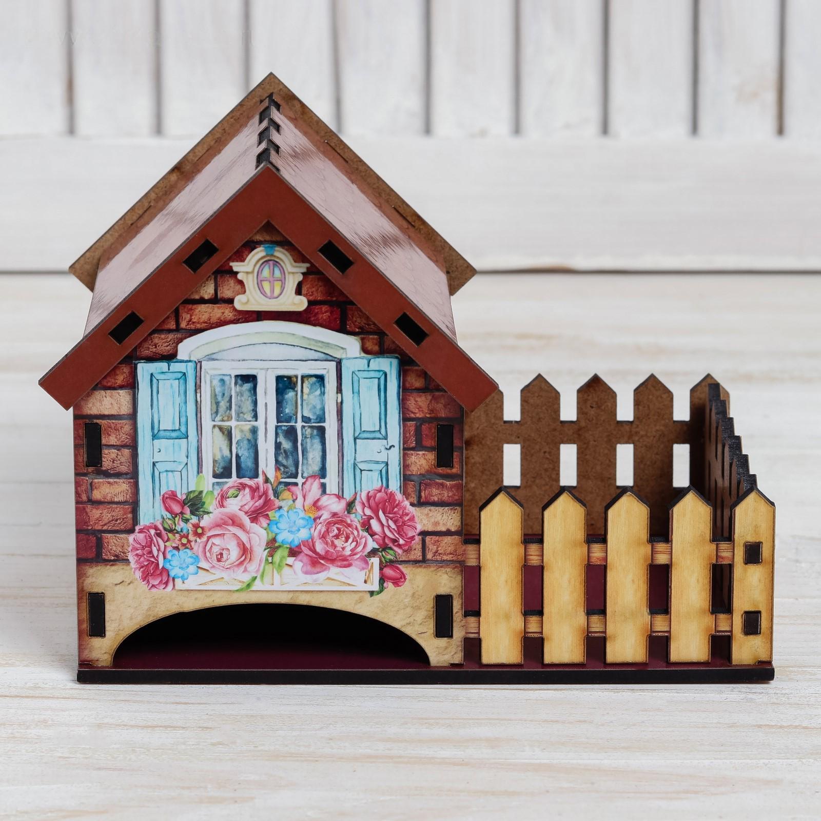 Домик выполнен из материала ХДФ, а красочность рисунка задаётся благодаря оклейке полиграфией.