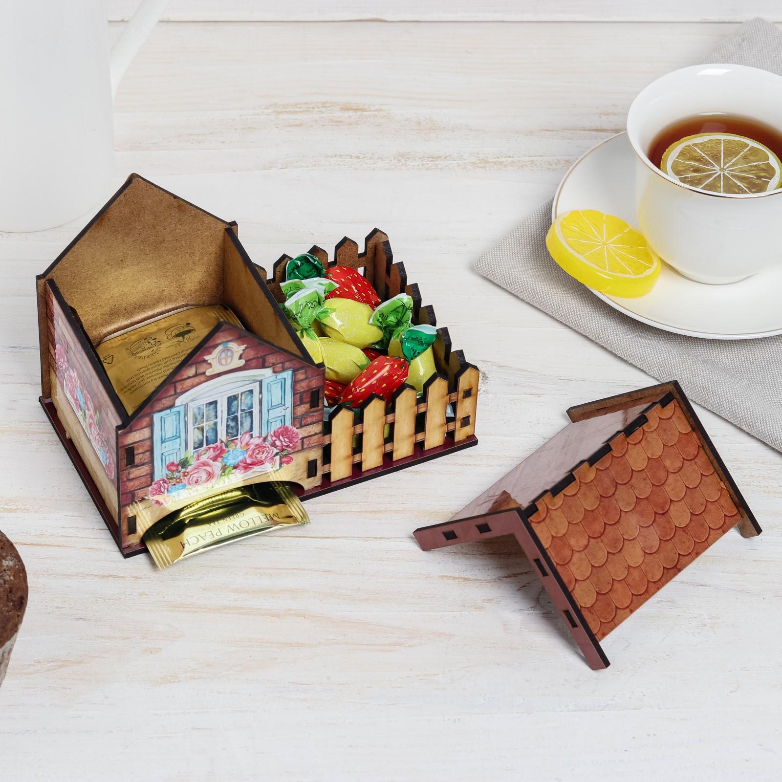 Чайный домик – это необычная упаковка для хранения чая. Он поможет навести порядок на обеденном столе, а также станет его яркой деталью. Чайные пакетики закладываются сверху внутрь домика и вынимаются снизу.
