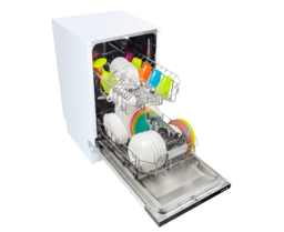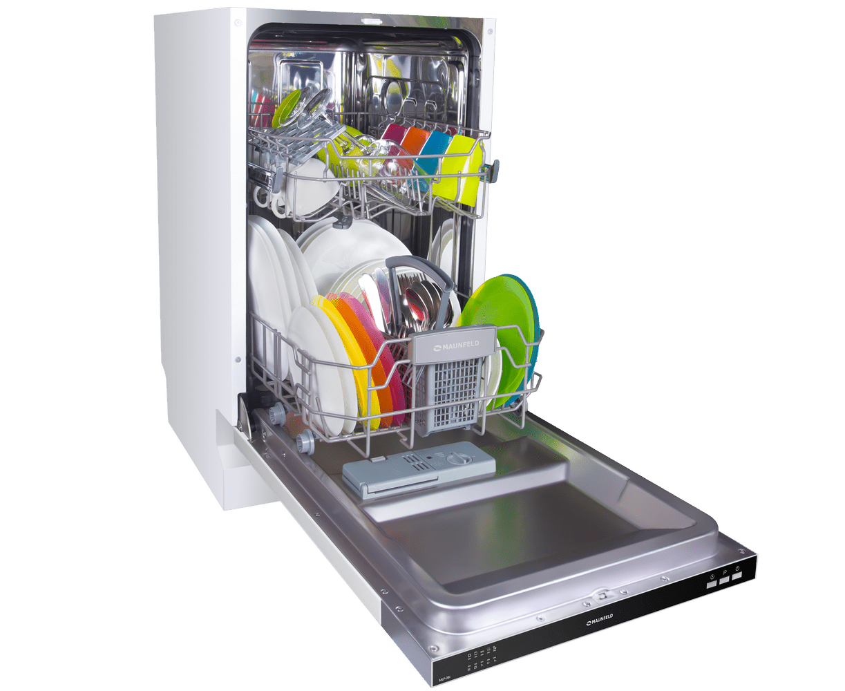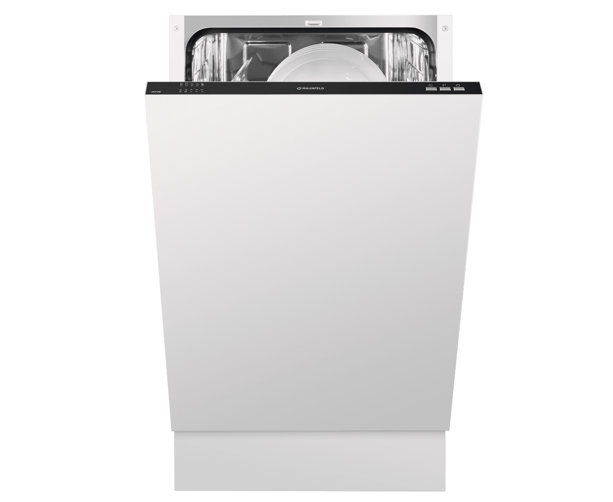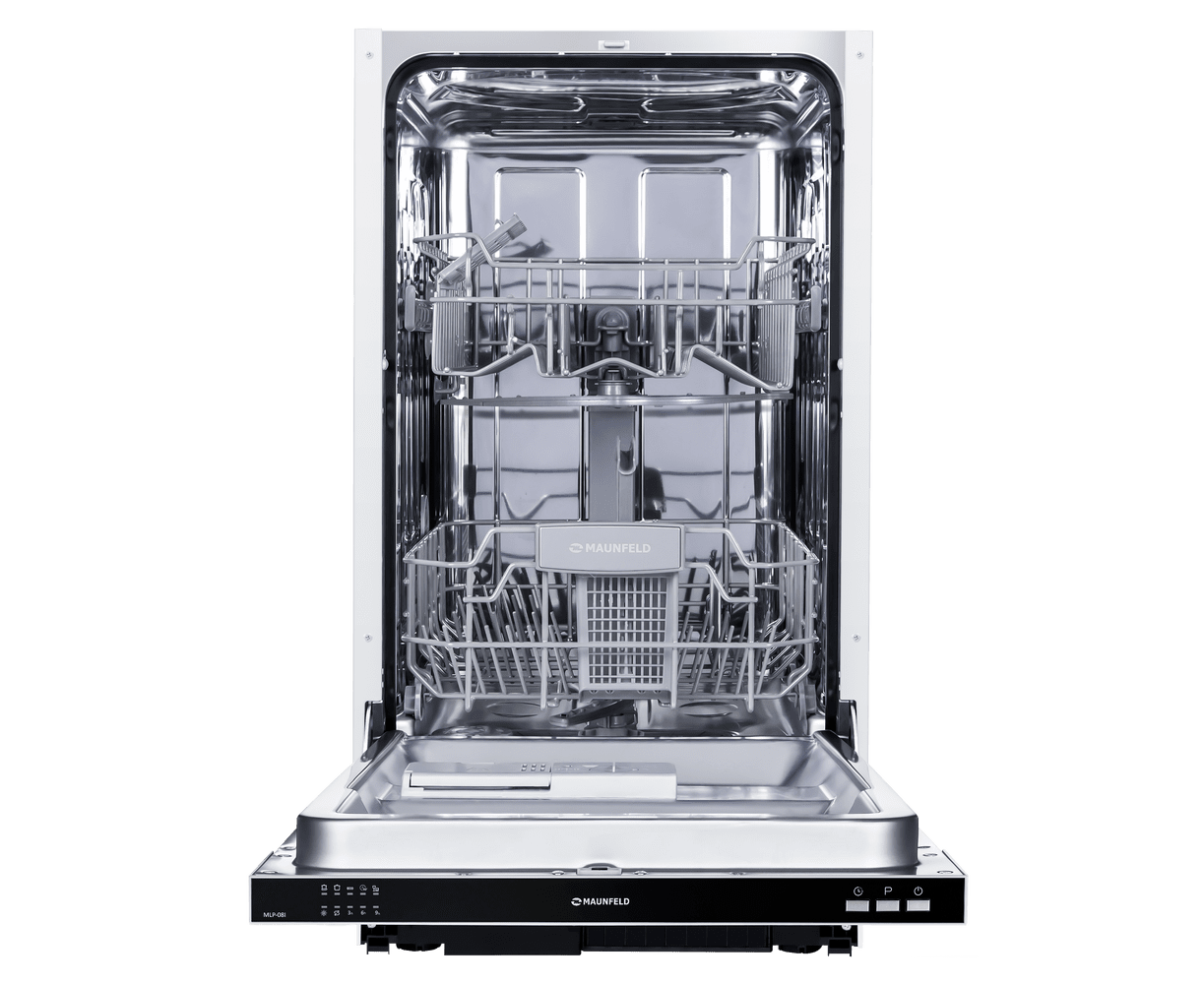 Узкая встраиваемая посудомоечная машина шириной 45 см на 9 комплектов посуды. Внутренняя поверхность выполнена из нержавеющей стали толщиной 0.6-0.8 мм, что обеспечит долгий срок службы при активном использовании.