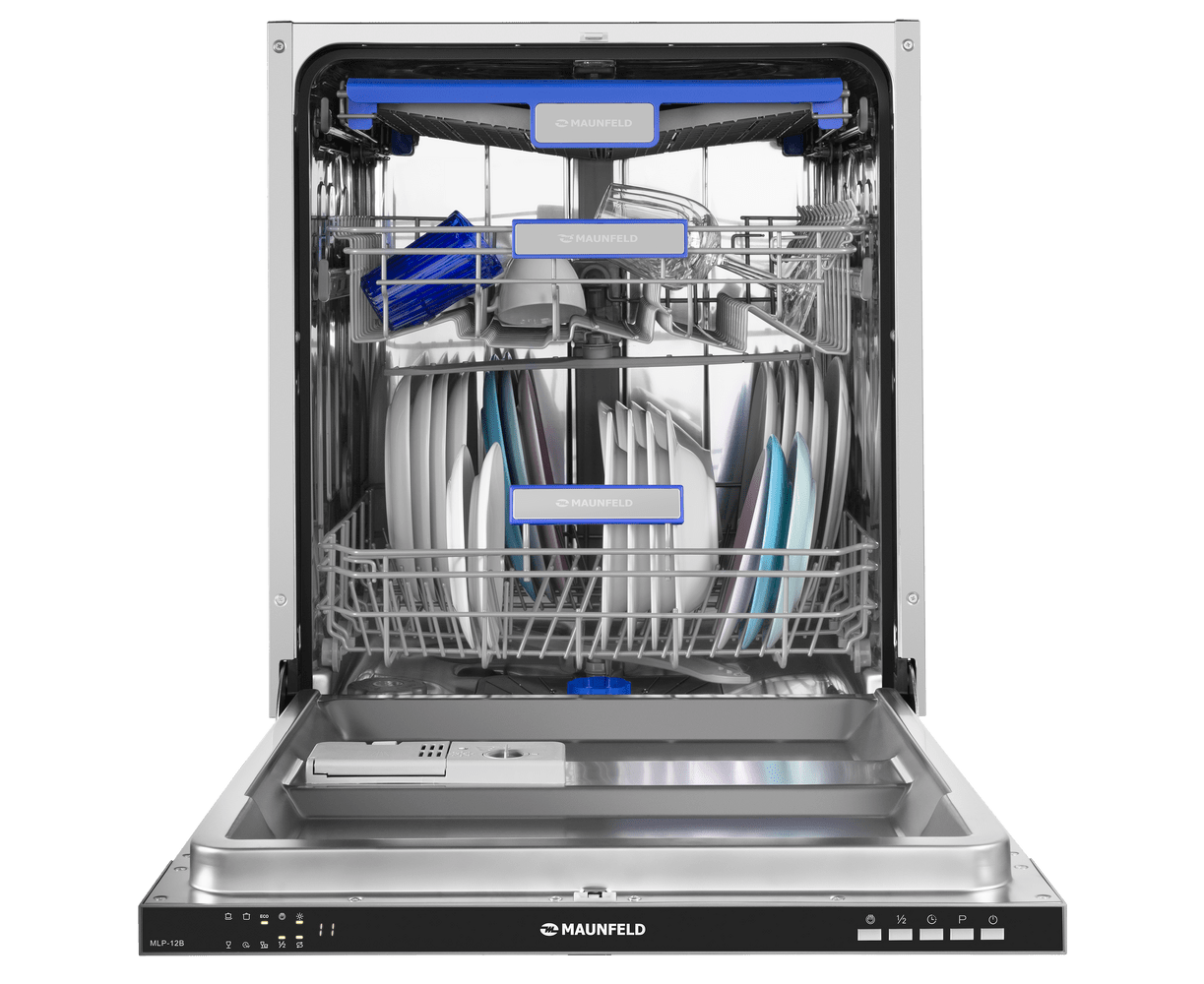 включить половинную загрузку, которая позволяет выбрать для мытья посуды либо верхнюю, либо нижнюю корзину