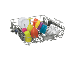 включить половинную загрузку, позволяющую выбрать для мытья посуды либо верхнюю, либо нижнюю корзину