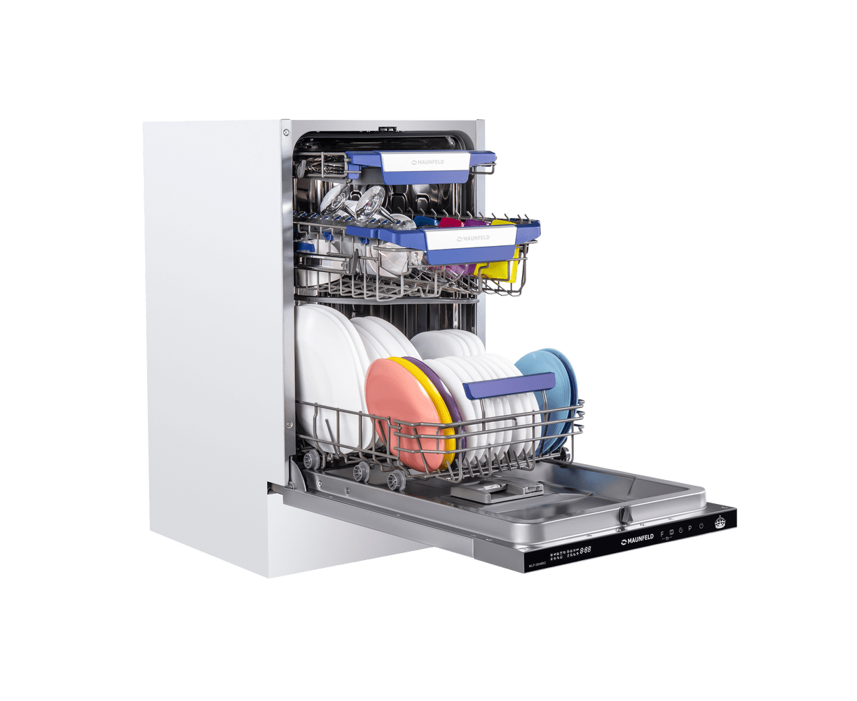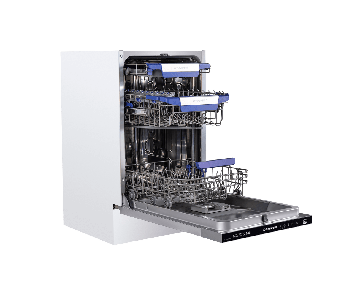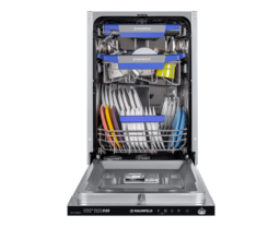 Узкая встраиваемая посудомоечная машина шириной 45 см. Благодаря использованию специально разработанных корзин и дополнительного выдвижного лотка для столовых приборов позволяет вымыть 10 комплектов посуды. Внутренняя поверхность выполнена из нержавеющей стали толщиной 0.6-0.8 мм, что обеспечит долгий срок службы при активном использовании.