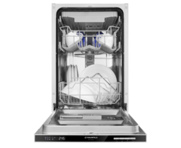Электронное управление с дисплеем расположено в торце загрузочной дверцы. Функционал данной модели позволяет вам выбрать программу мойки, включить половинную загрузку, выставить время отсрочки старта (1-24 часов).