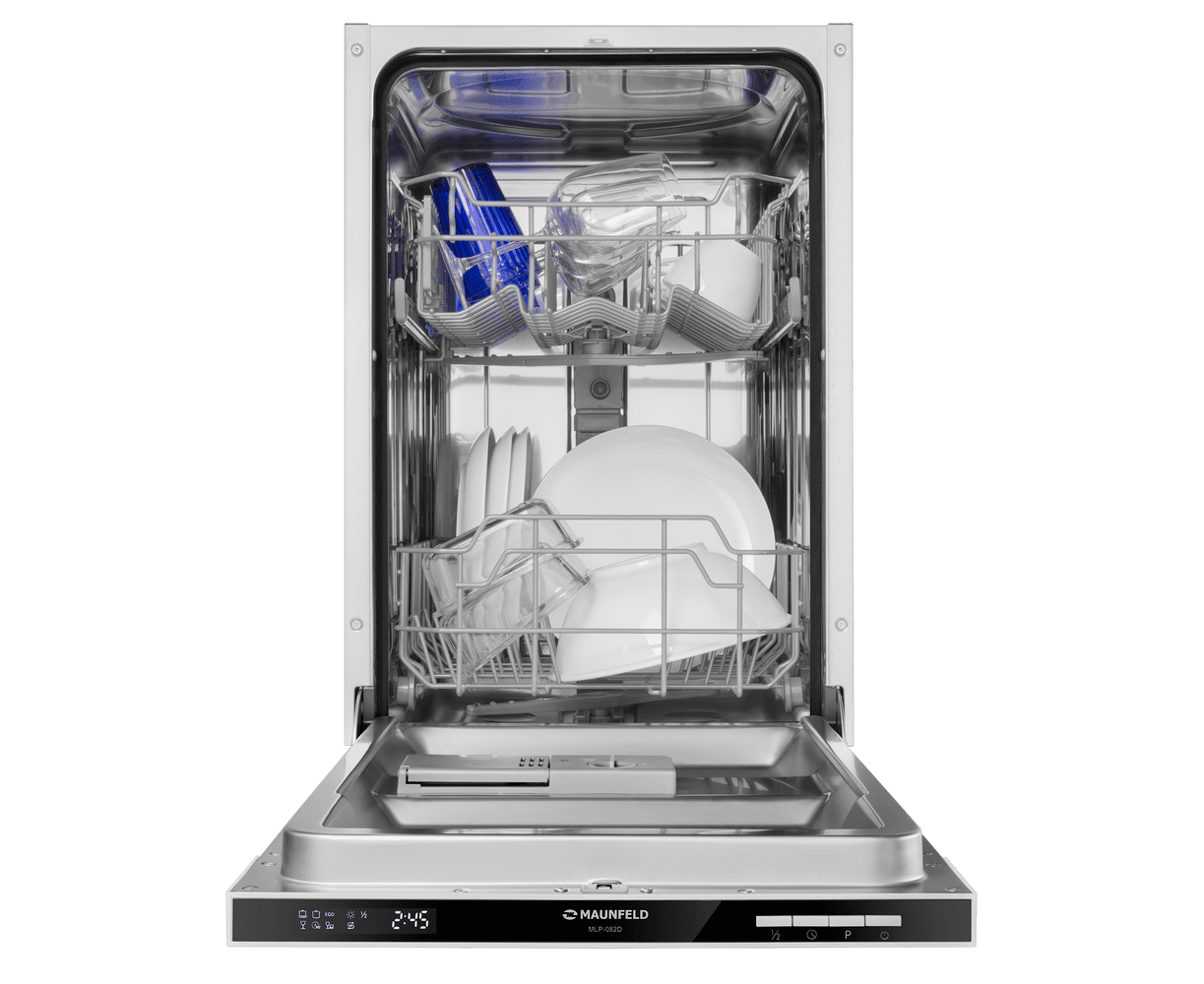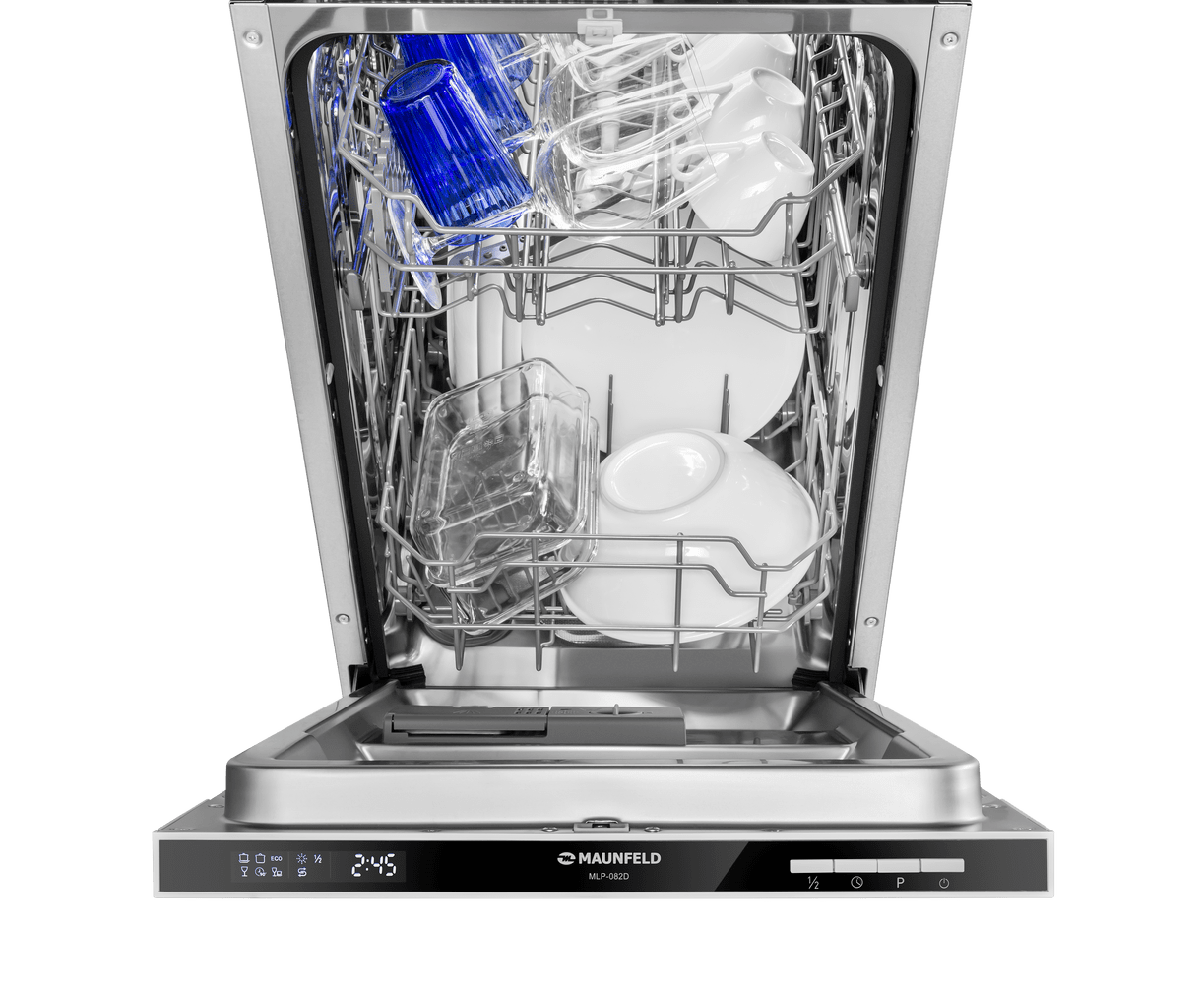 Благодаря использованию специально разработанных корзин MLP-082D позволяет вымыть 9 комплектов посуды.